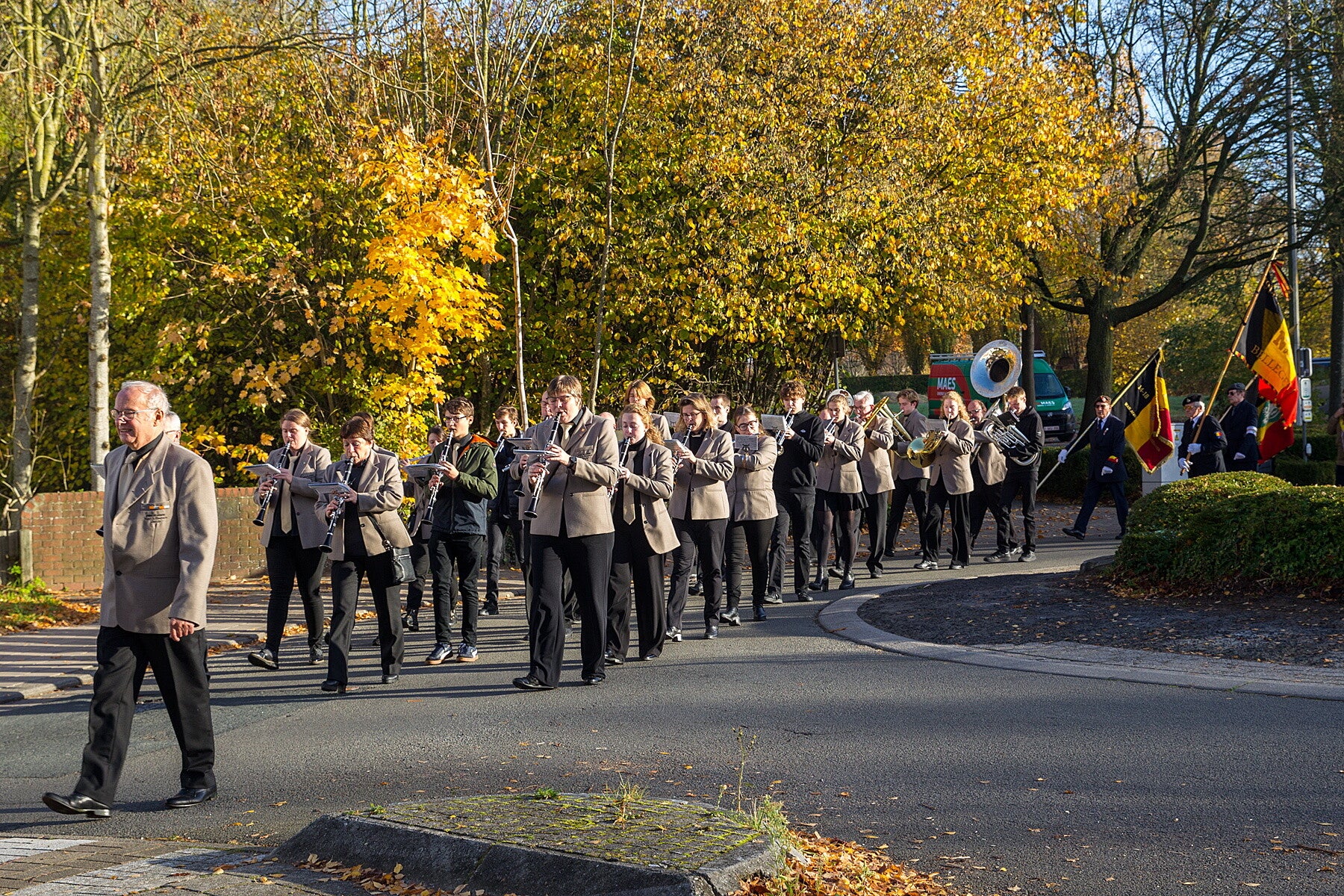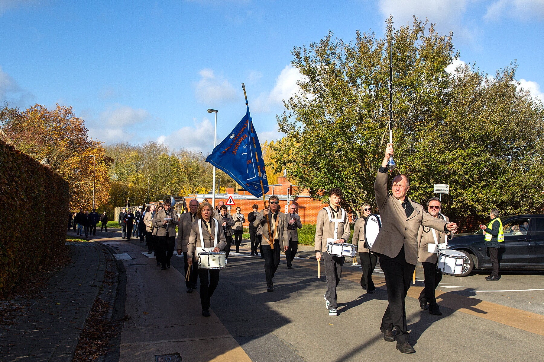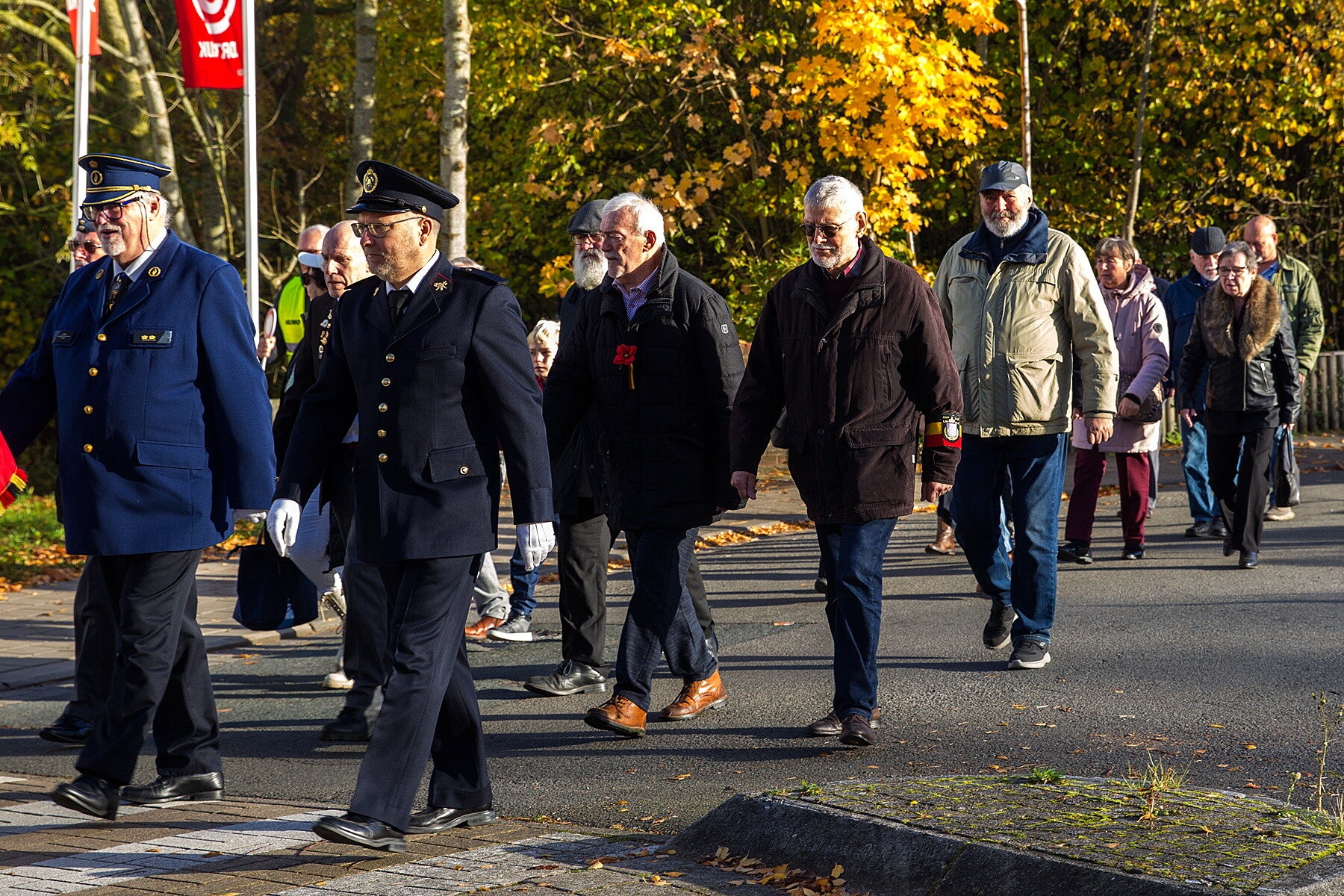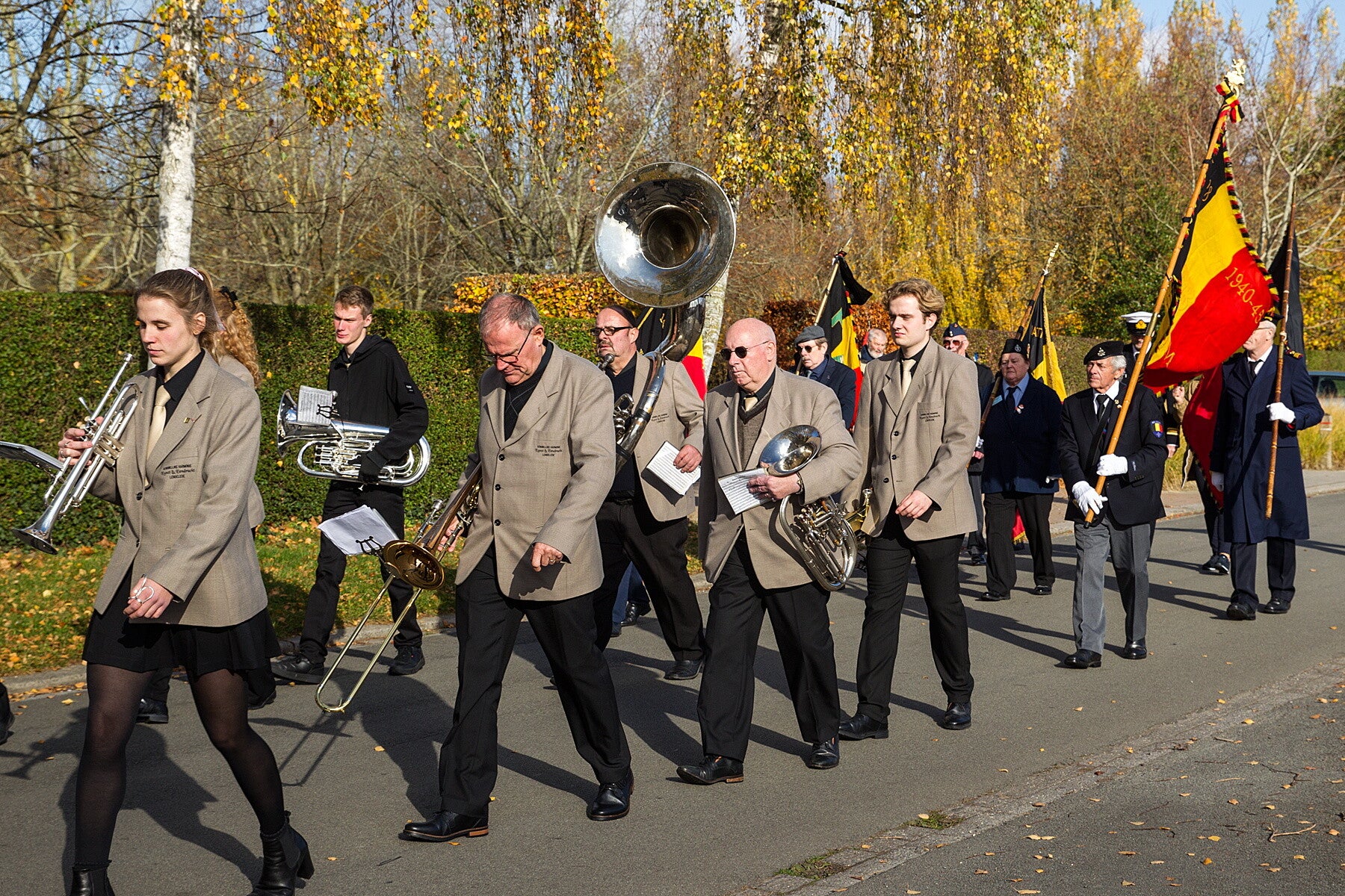 Daarop ging de stoet voorafgegaan door Harmonie Kunst en Eendracht uit Lendelede naar het memoriaal op de begraafplaats Marke. Daar werd hulde gebracht aan alle slachtoffers van de oorlogen die er hun laatste rustplaats hebben.