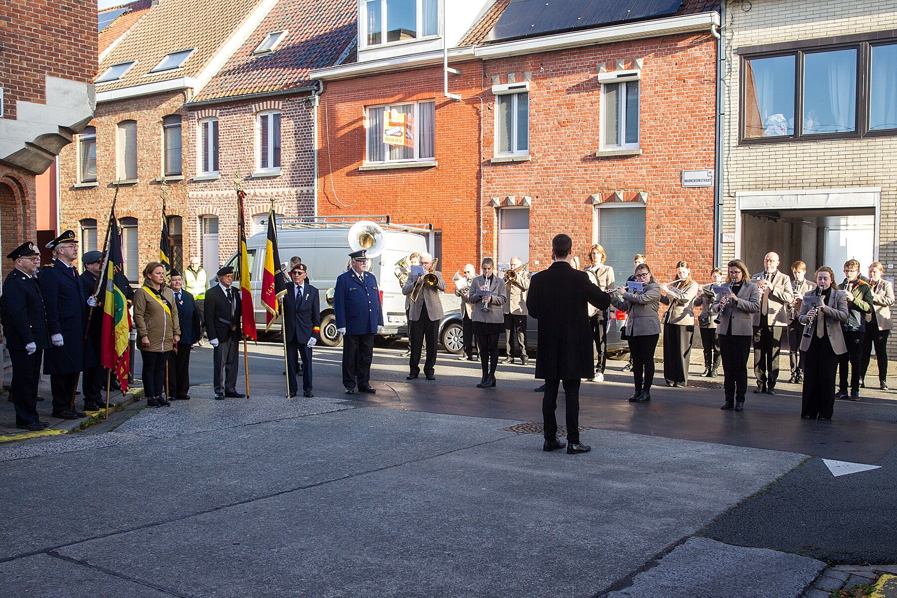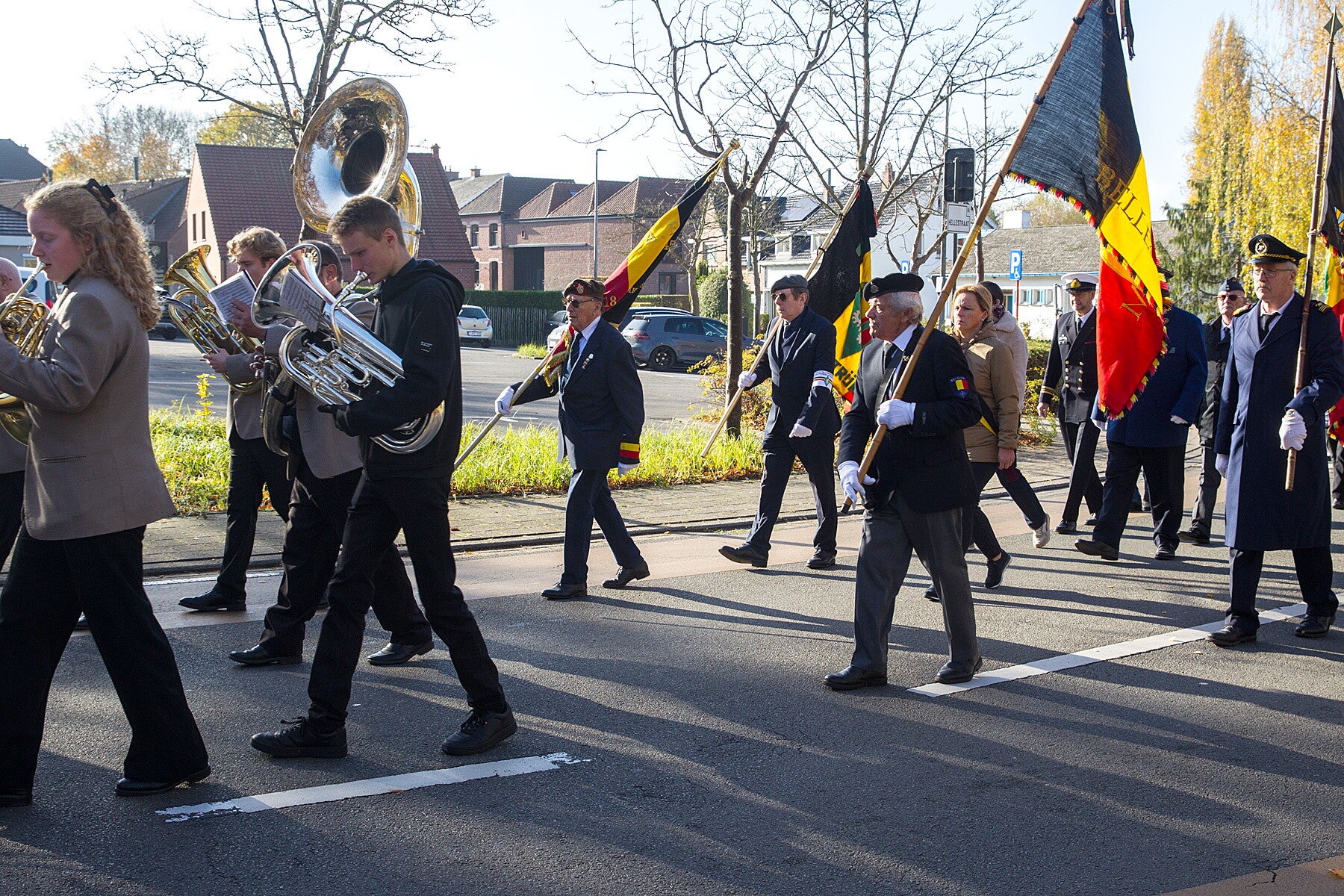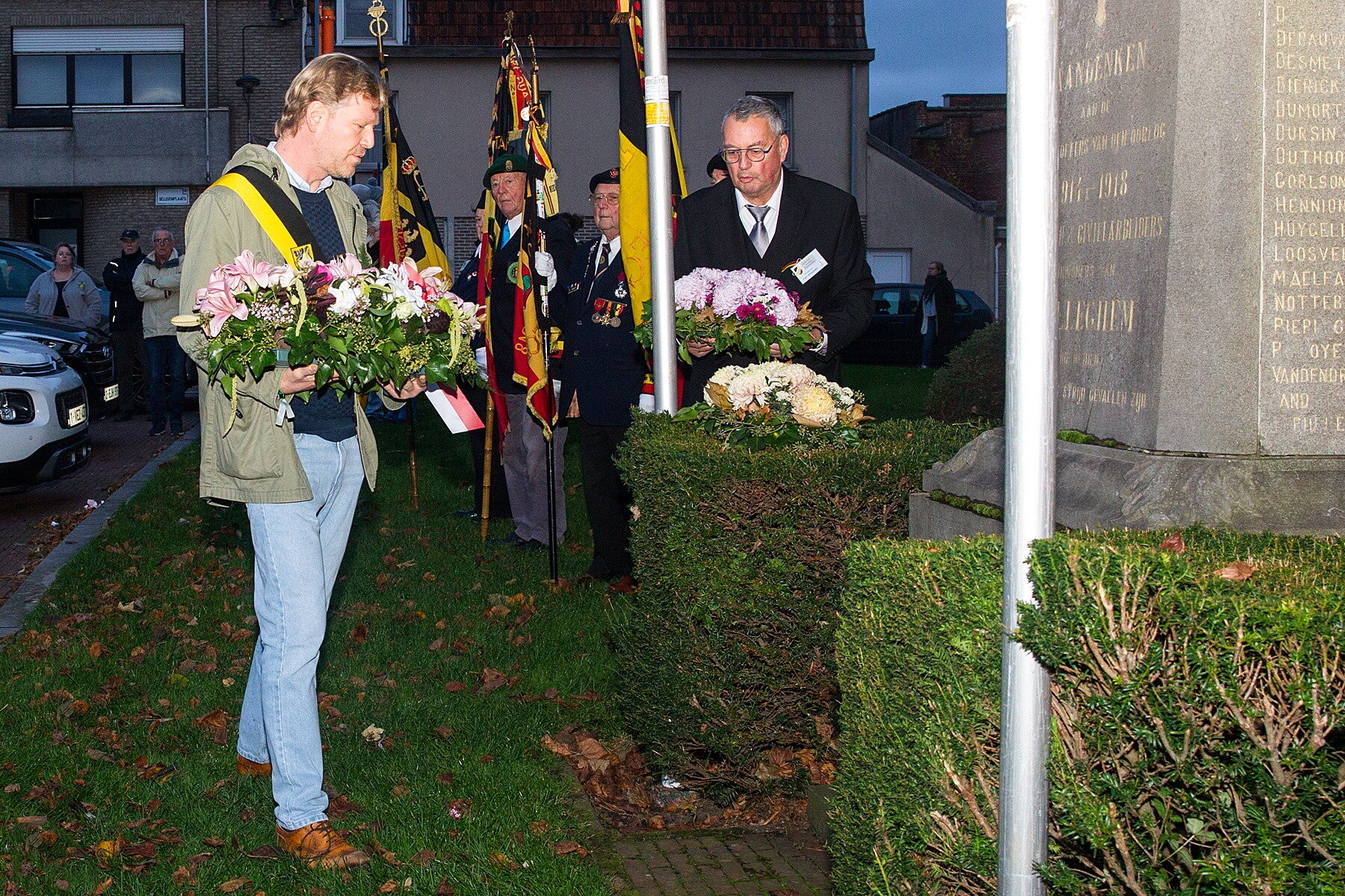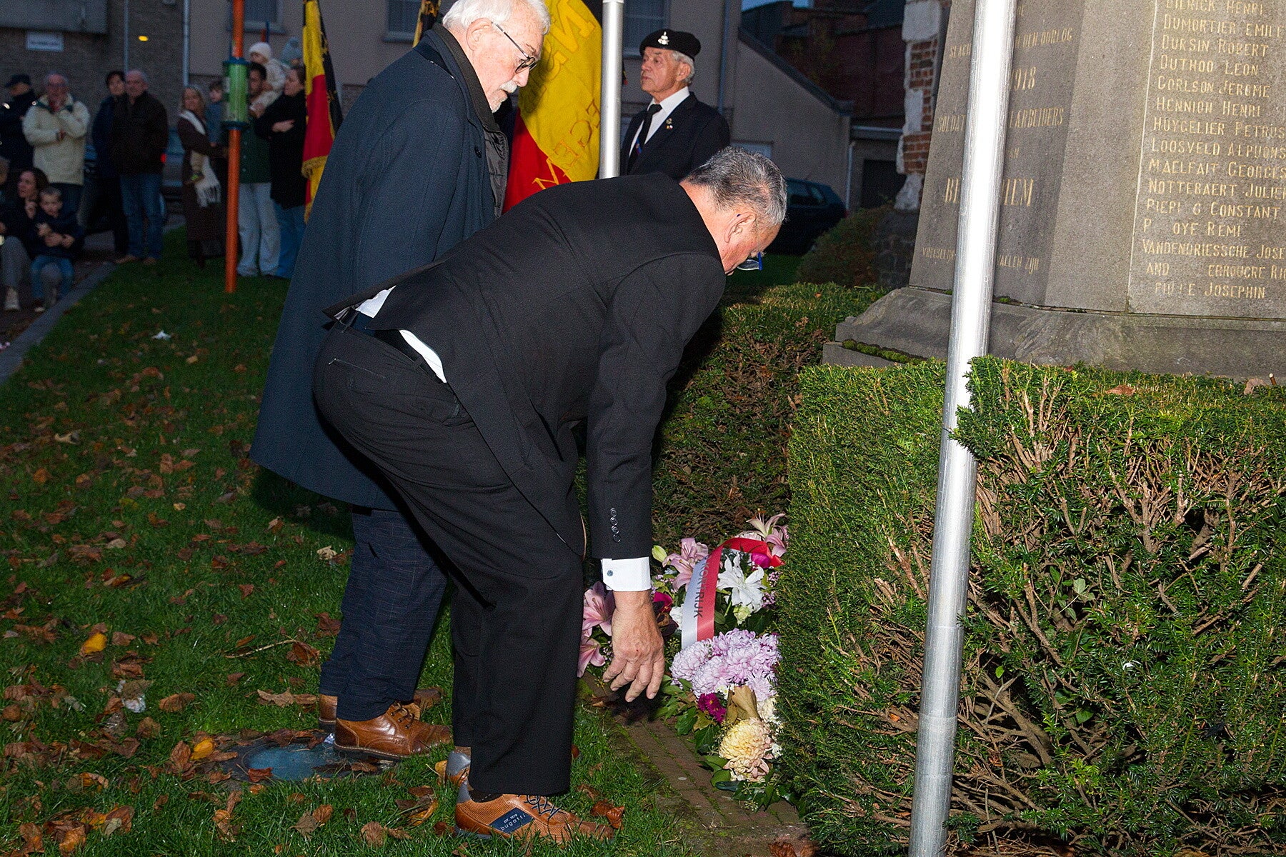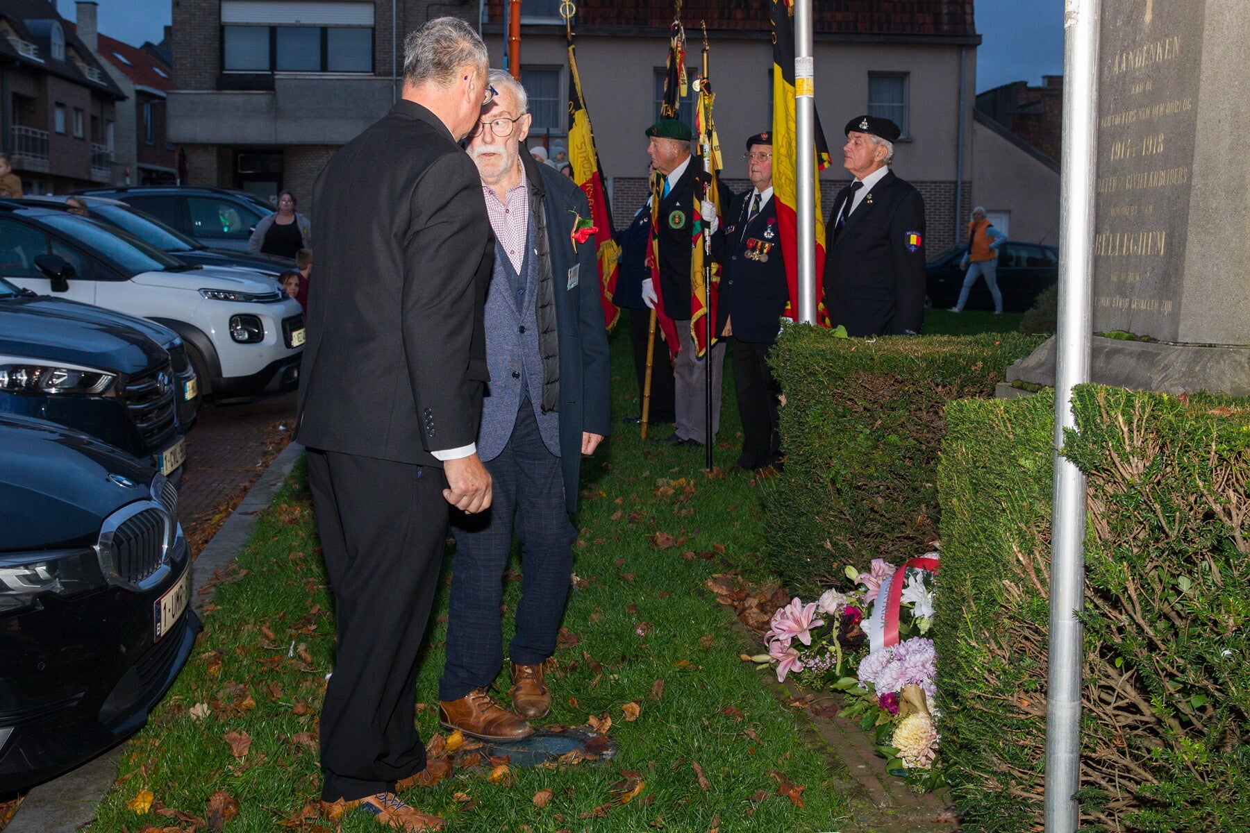 Om stipt 17 uur werd op Bellegemplaats hulde gebracht aan de gesneuvelden en de burgerlijke slachtoffer vereeuwigd op het oorlogsmonument.