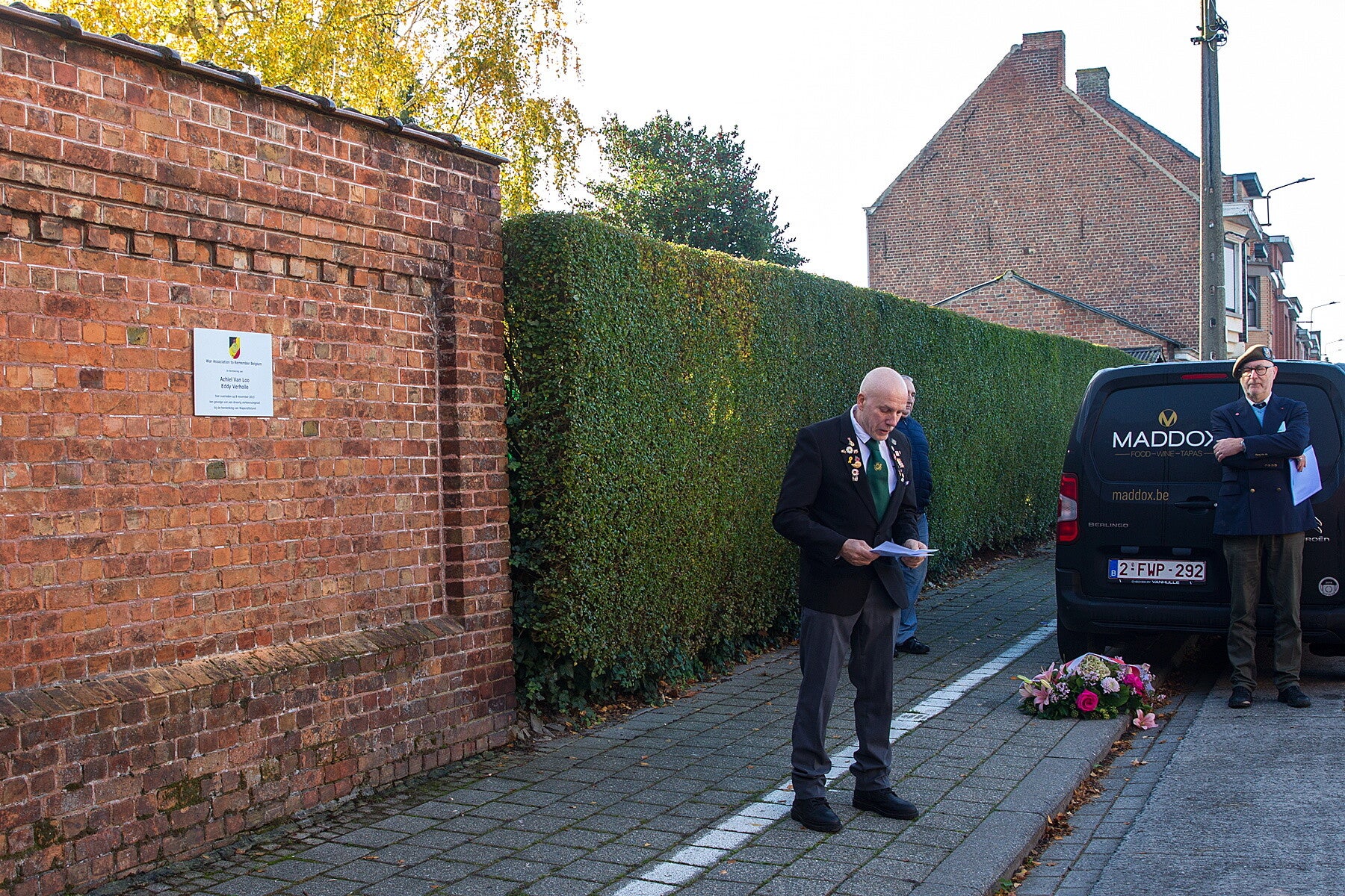 De herdenking op 9 november 2025 was heel bijzondere vanwege de bijzonder tragische gebeurtenis op 8 november 2015, dus tien jaar geleden. Op die dag werd de zwartste bladzijde geschreven in de geschiedenis van de W.A.R. Op de hoek van de Markekerkstraat en de Hector Casteleinstraat reed een auto in op onze groep die deelnam aan de herdenking van Wapenstilstand 2015. Bij het ongeval verloren twee leden van de W.A.R. het leven, Achiel Van Loo en Eddy Verholle.