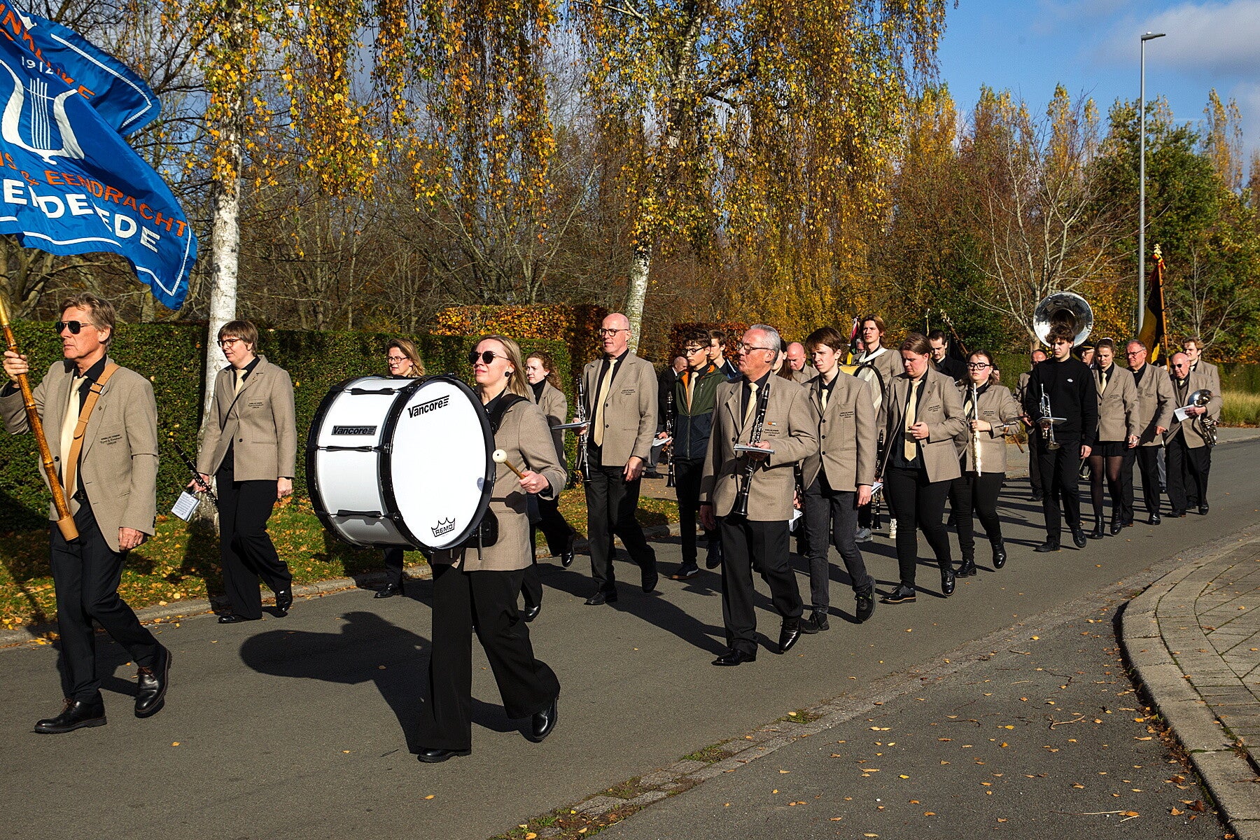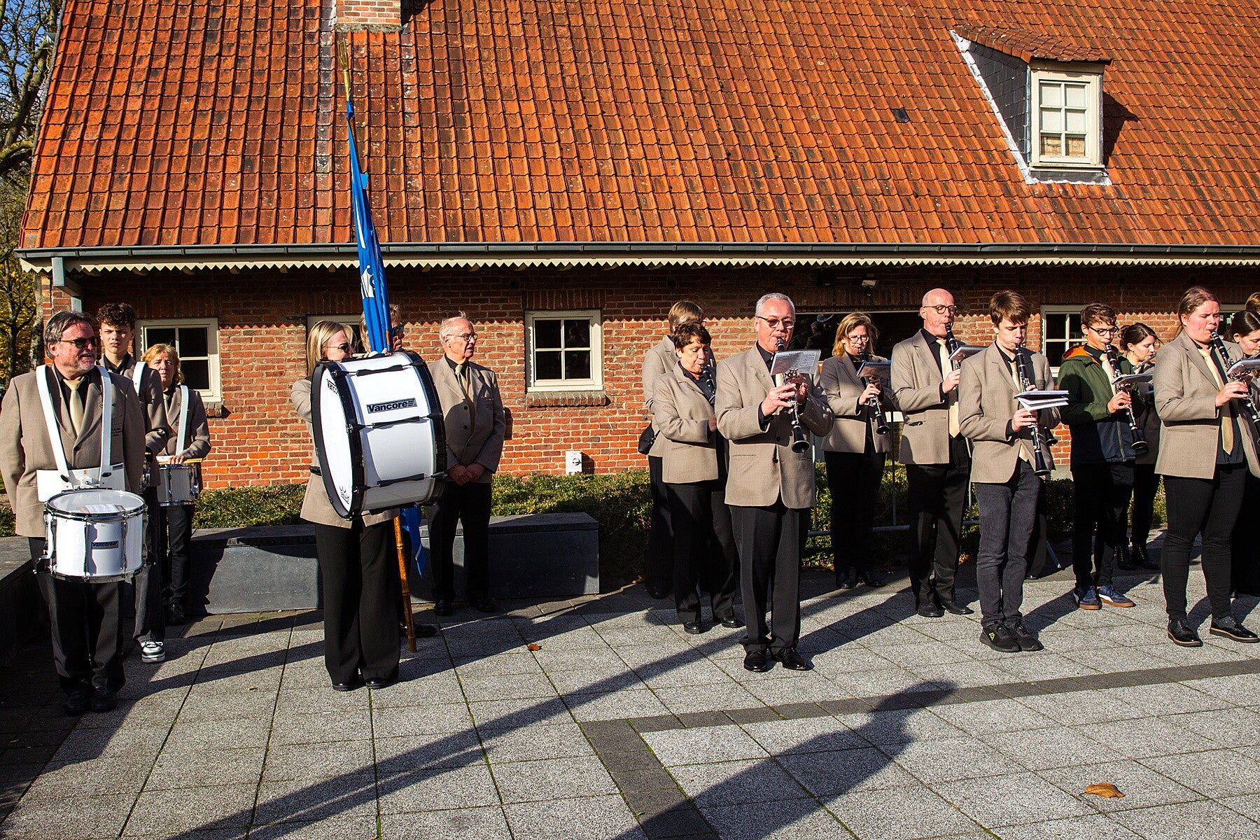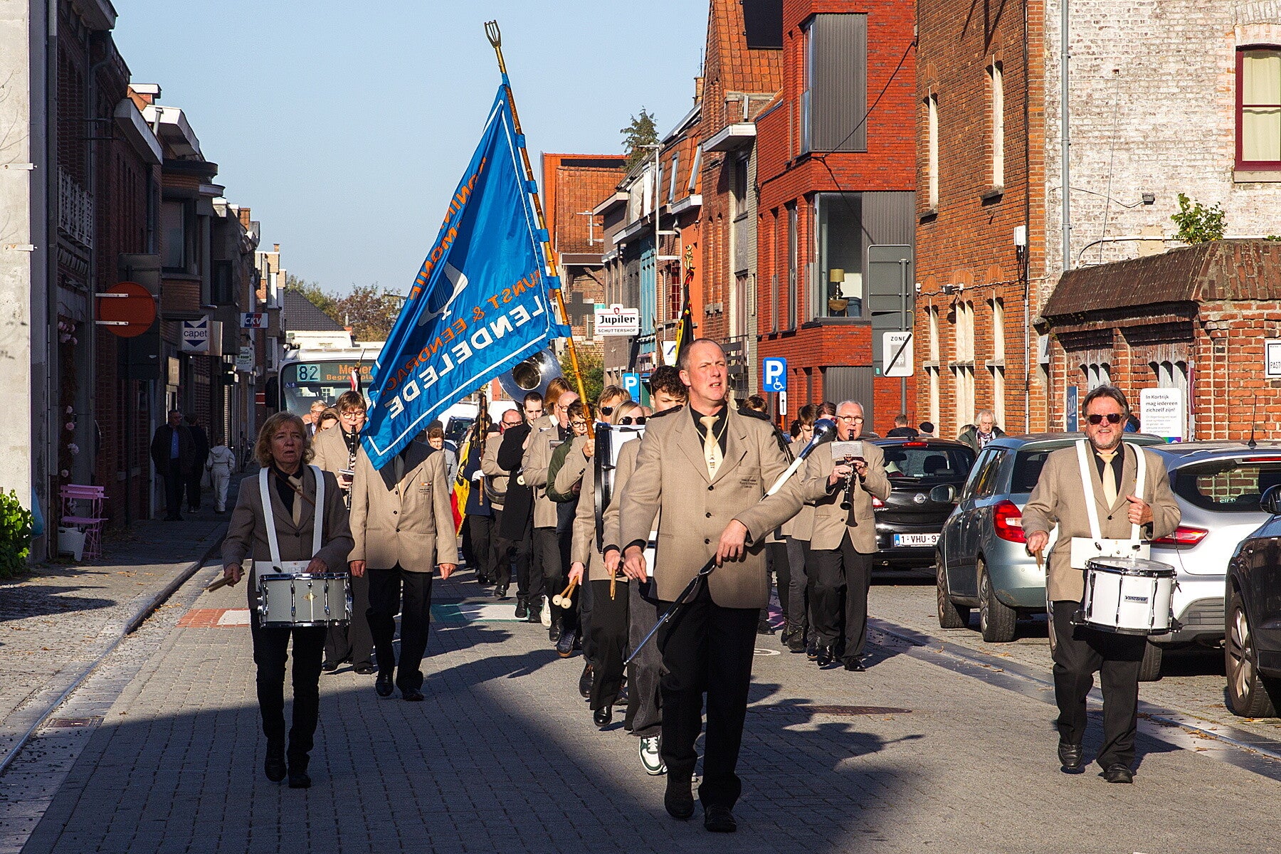 De hymnes werden gebracht door de Koninklijke Harmonie Kunst en Eendracht Lendelede. Ook bracht een piper een eresaluut aan de personen die met de onthulling van het monument geëerd en herdacht werden. De plechtiheid werd afgesloten met drie saluutschoten. (Foto's Eric Blomme waarvoor dank)