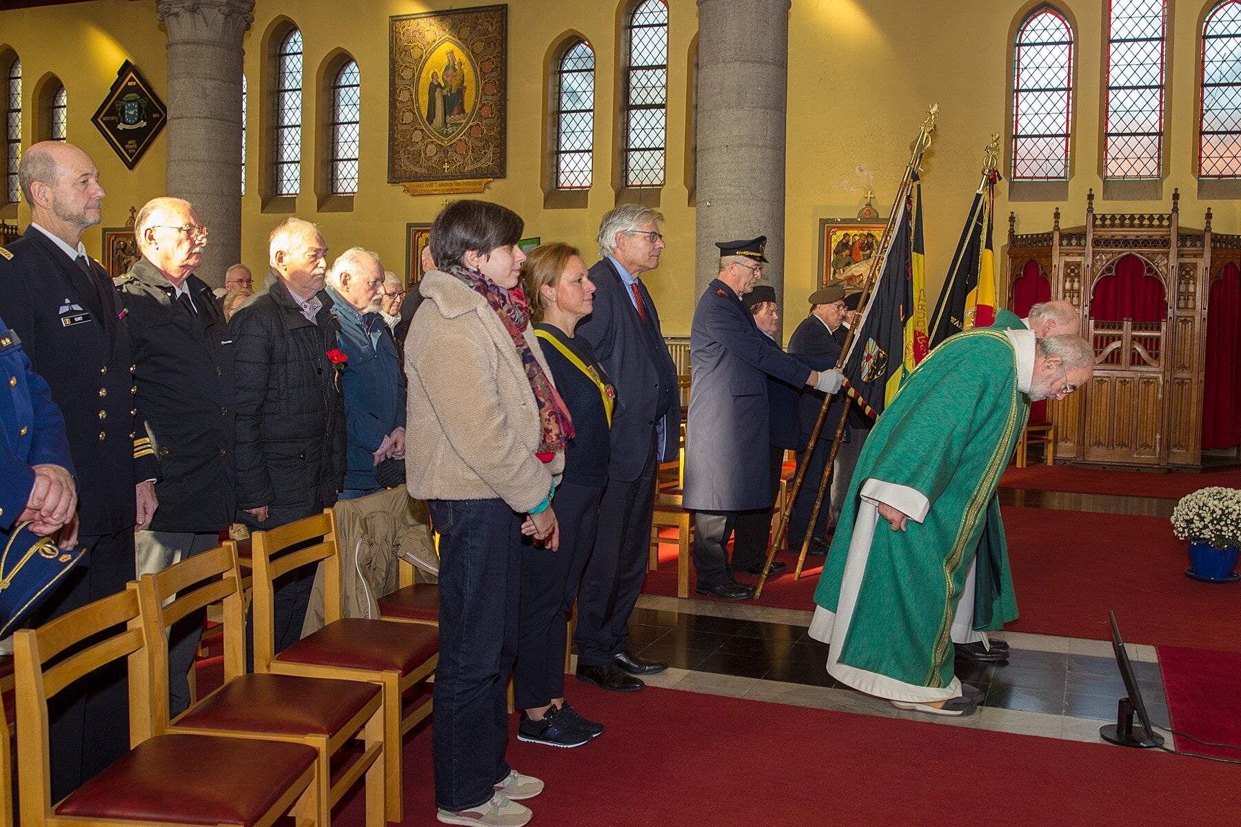 De herdenking van de oorlogsslachtoffers en oud-strijders, weerstanders e.a. moest wegens de weeromstandigheden uitwijken naar de Sint-Amanduskerk.