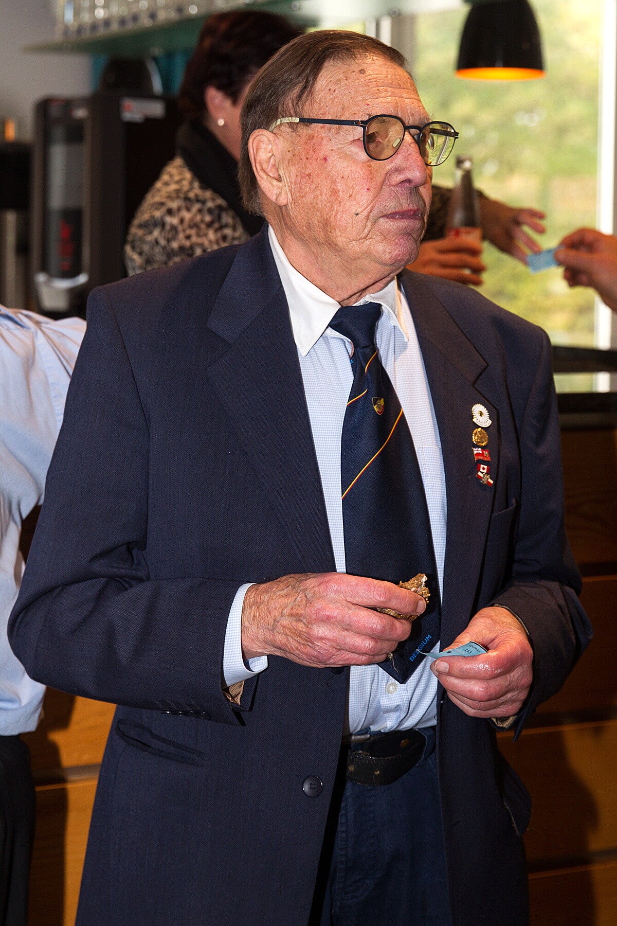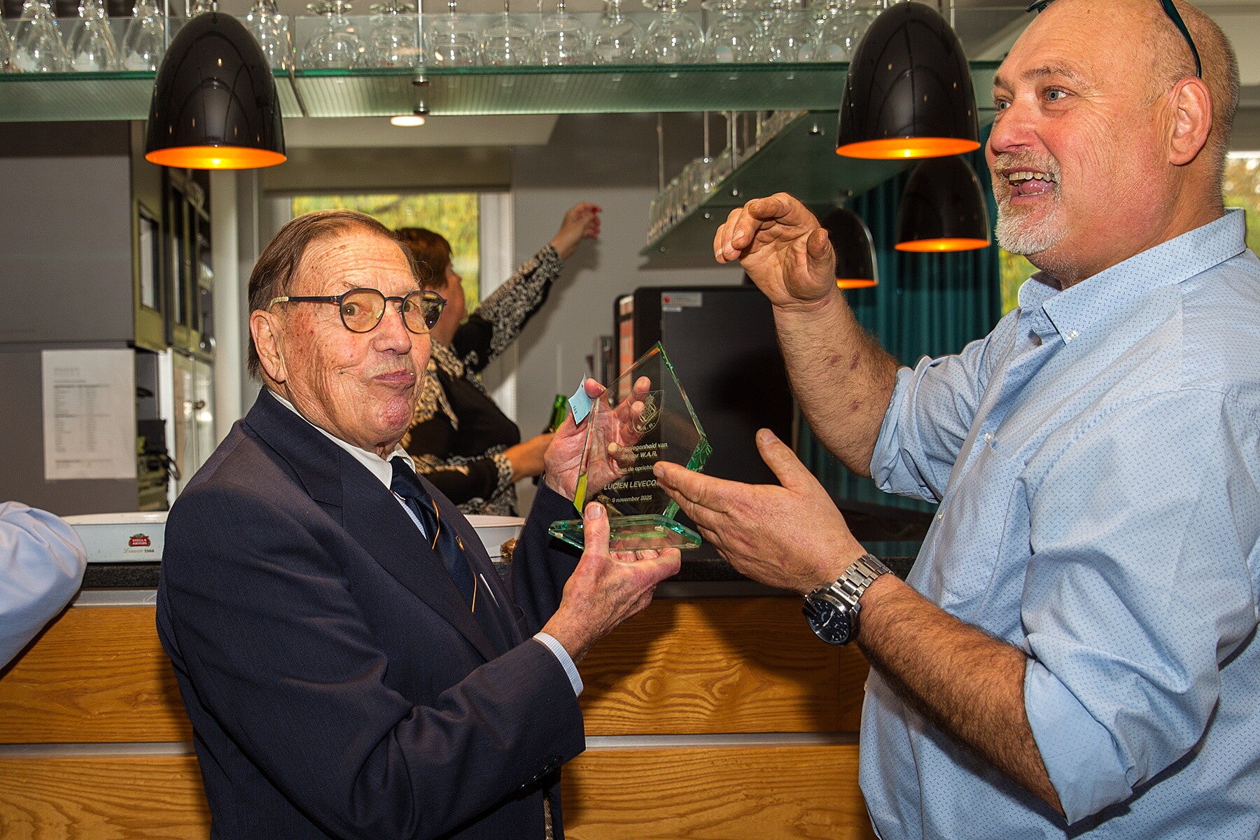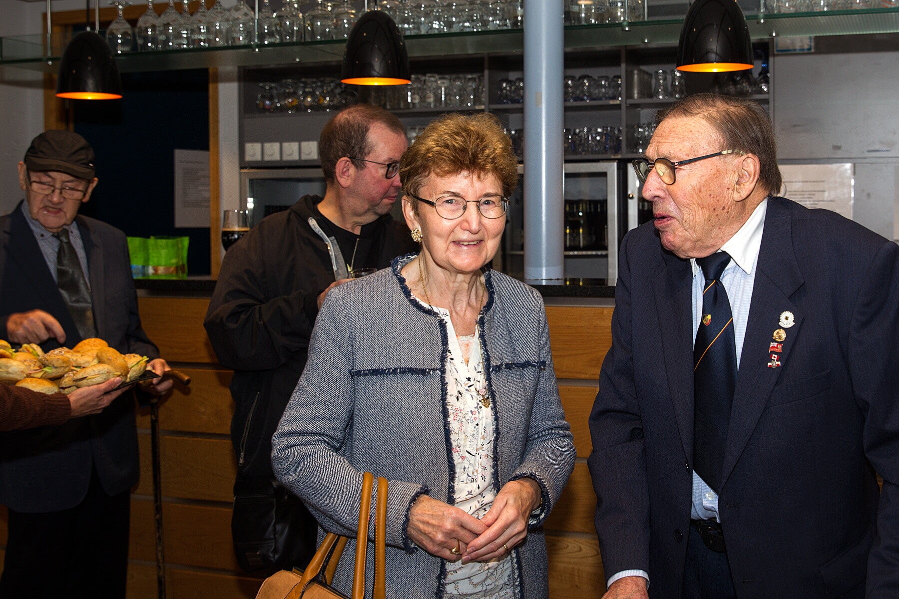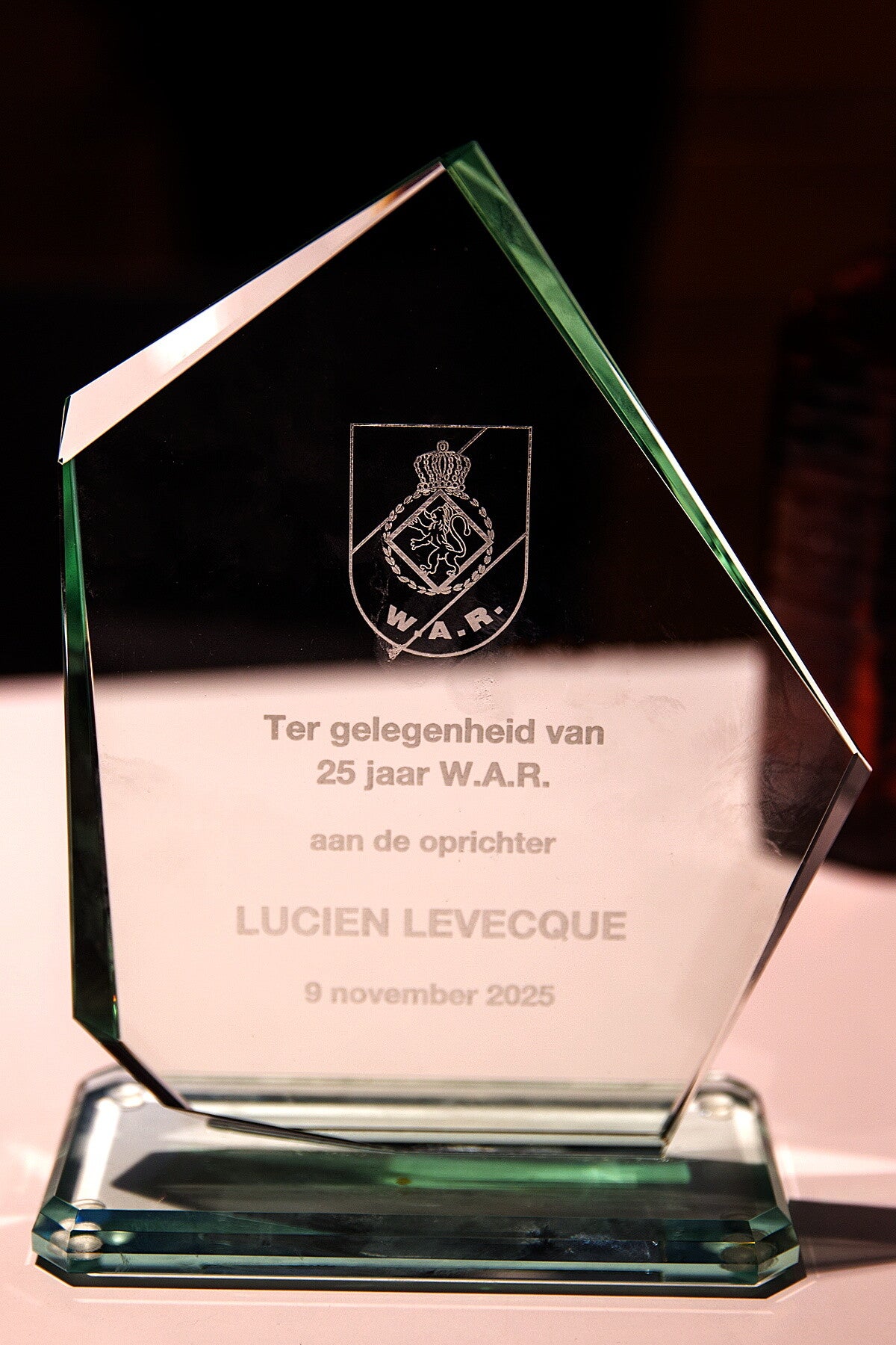 Op de receptie na de plechtigheid werd Lucien Levecque, mede-oprichter van de W.A.R. in de bloemetjes gezet n.a.v. 25 jaar War Association to Remember.