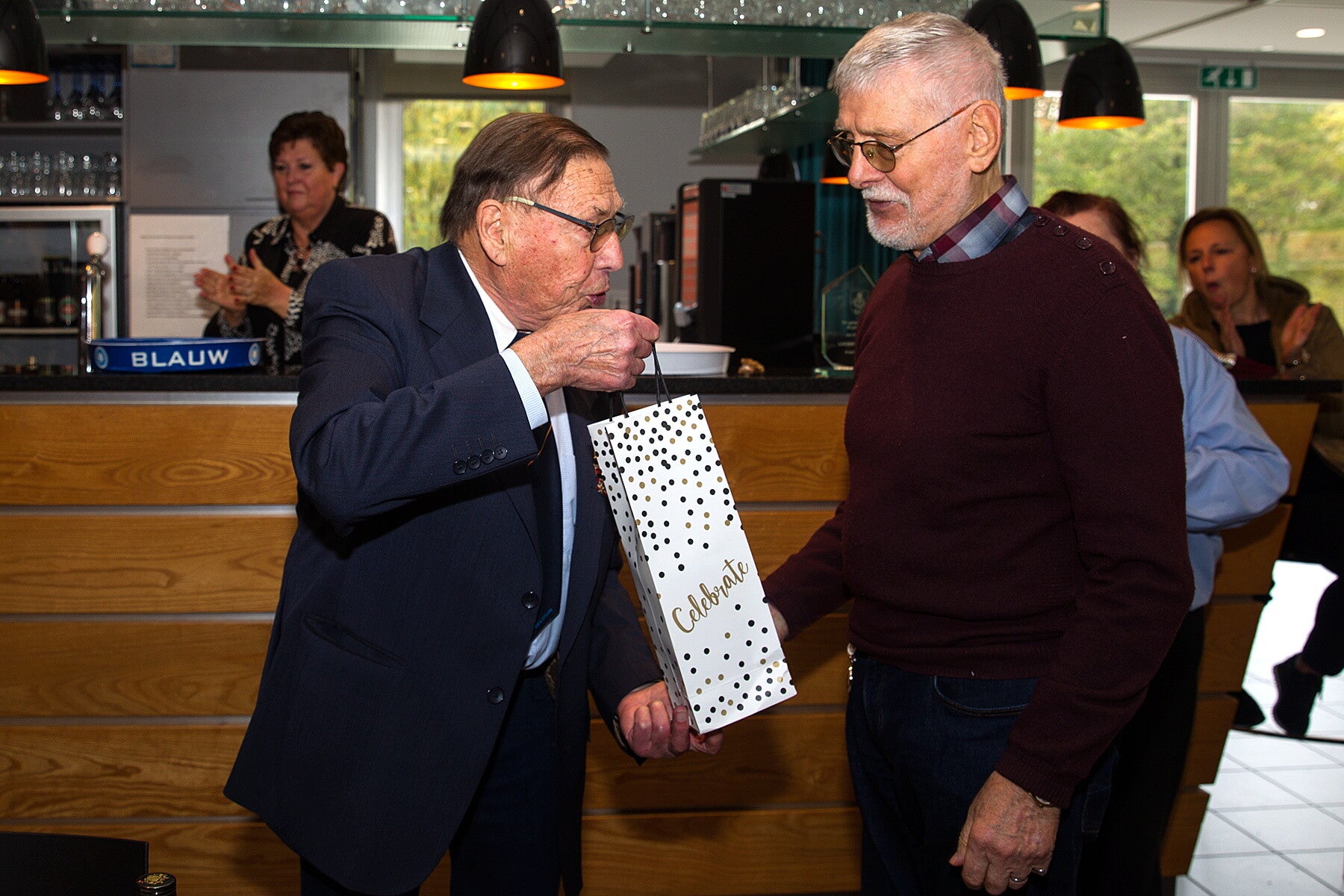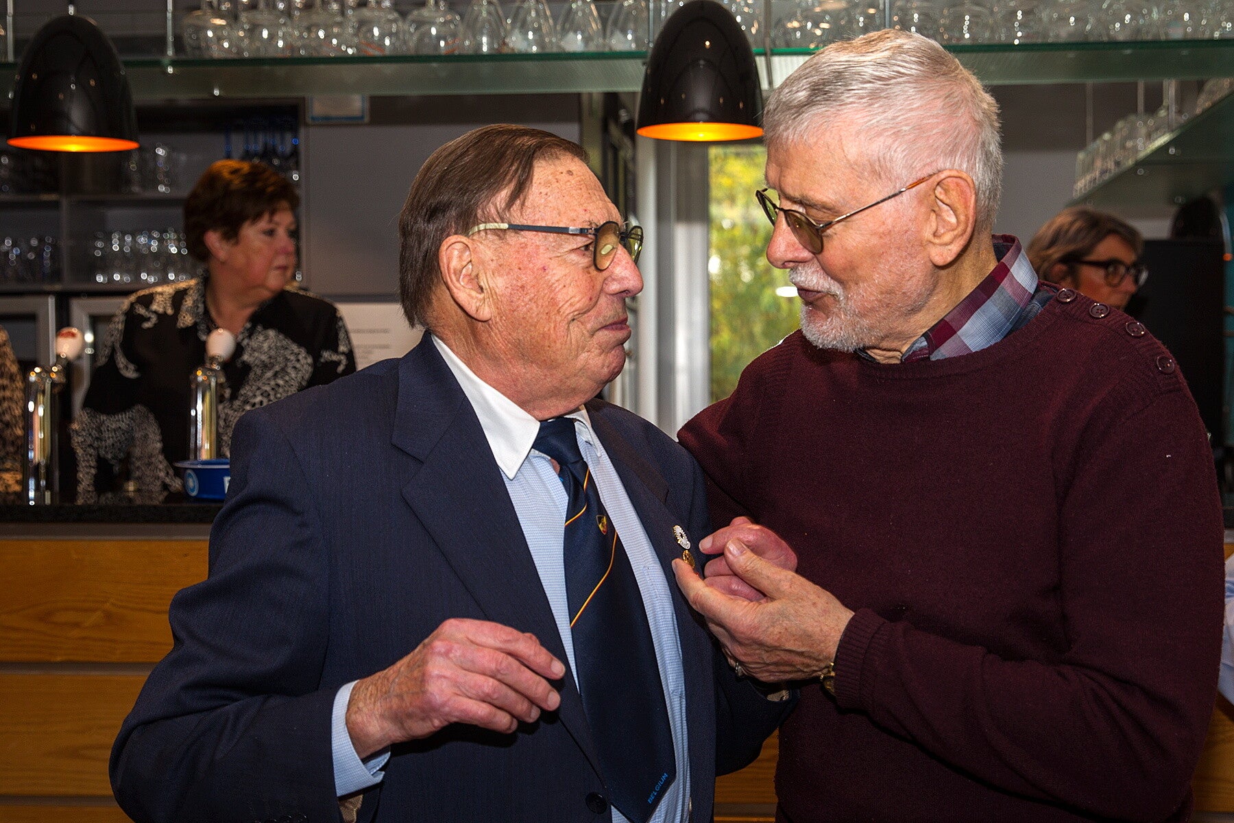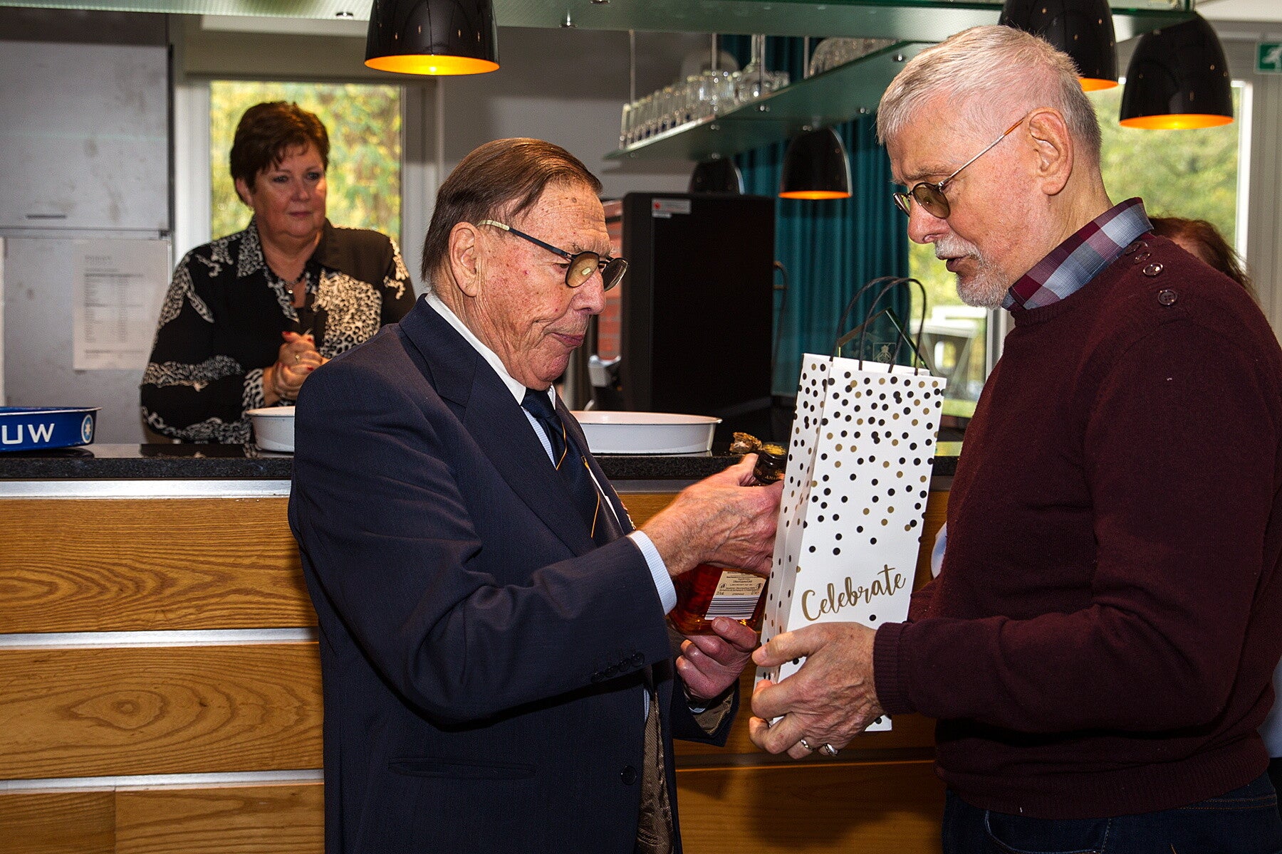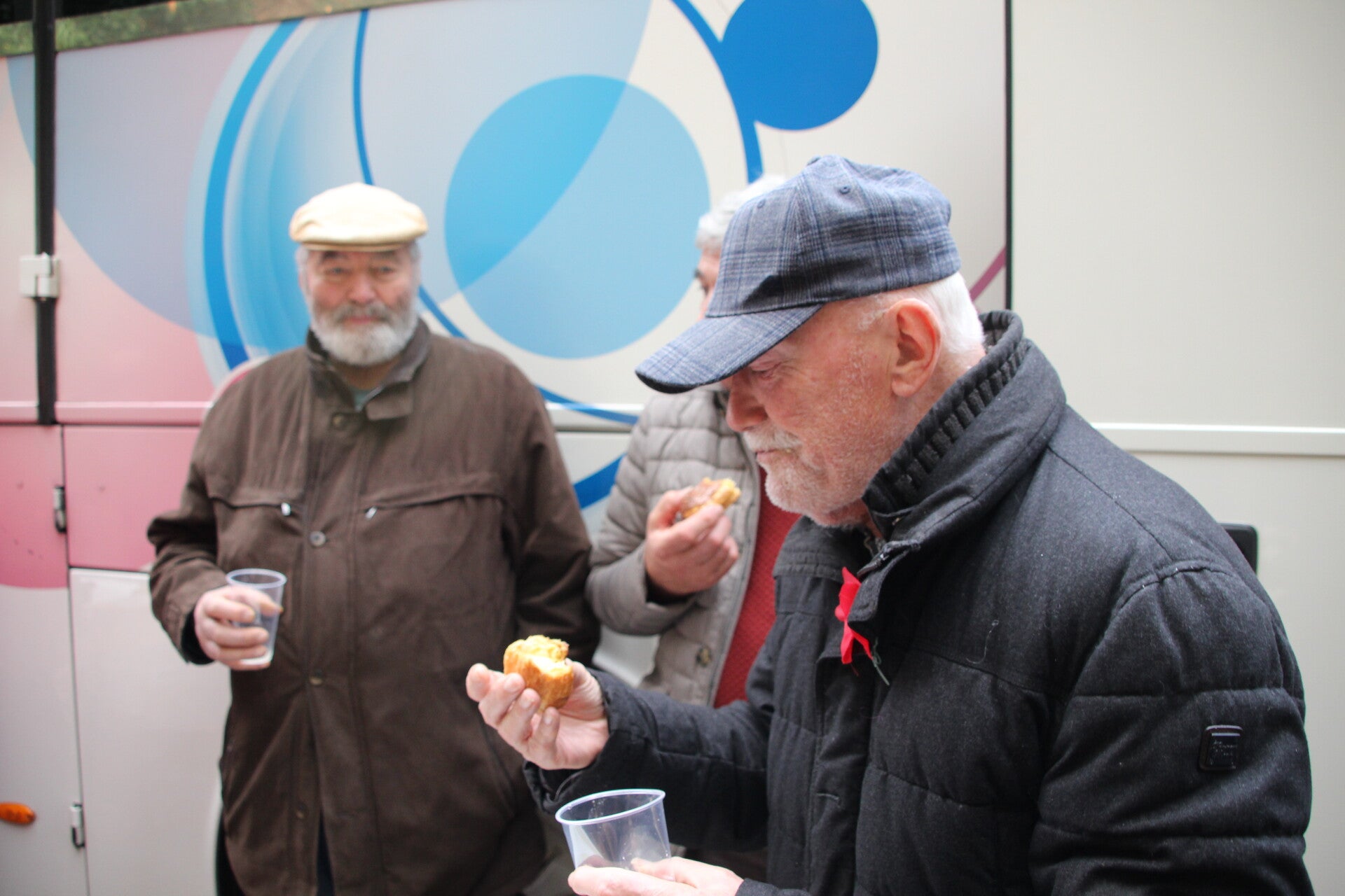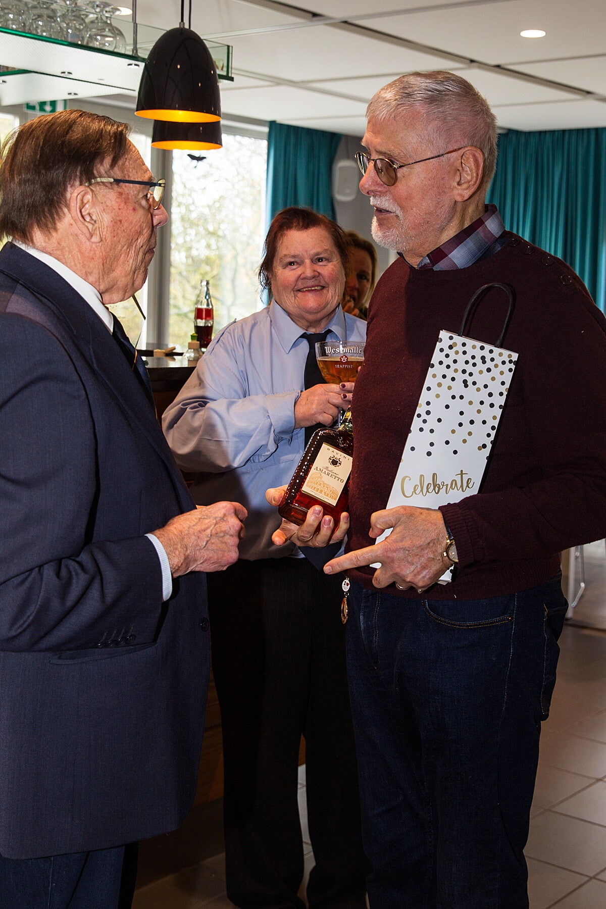 Op de receptie na de plechtigheid werd Lucien Levecque, mede-oprichter van de W.A.R. in de bloemetjes gezet n.a.v. 25 jaar War Association to Remember.