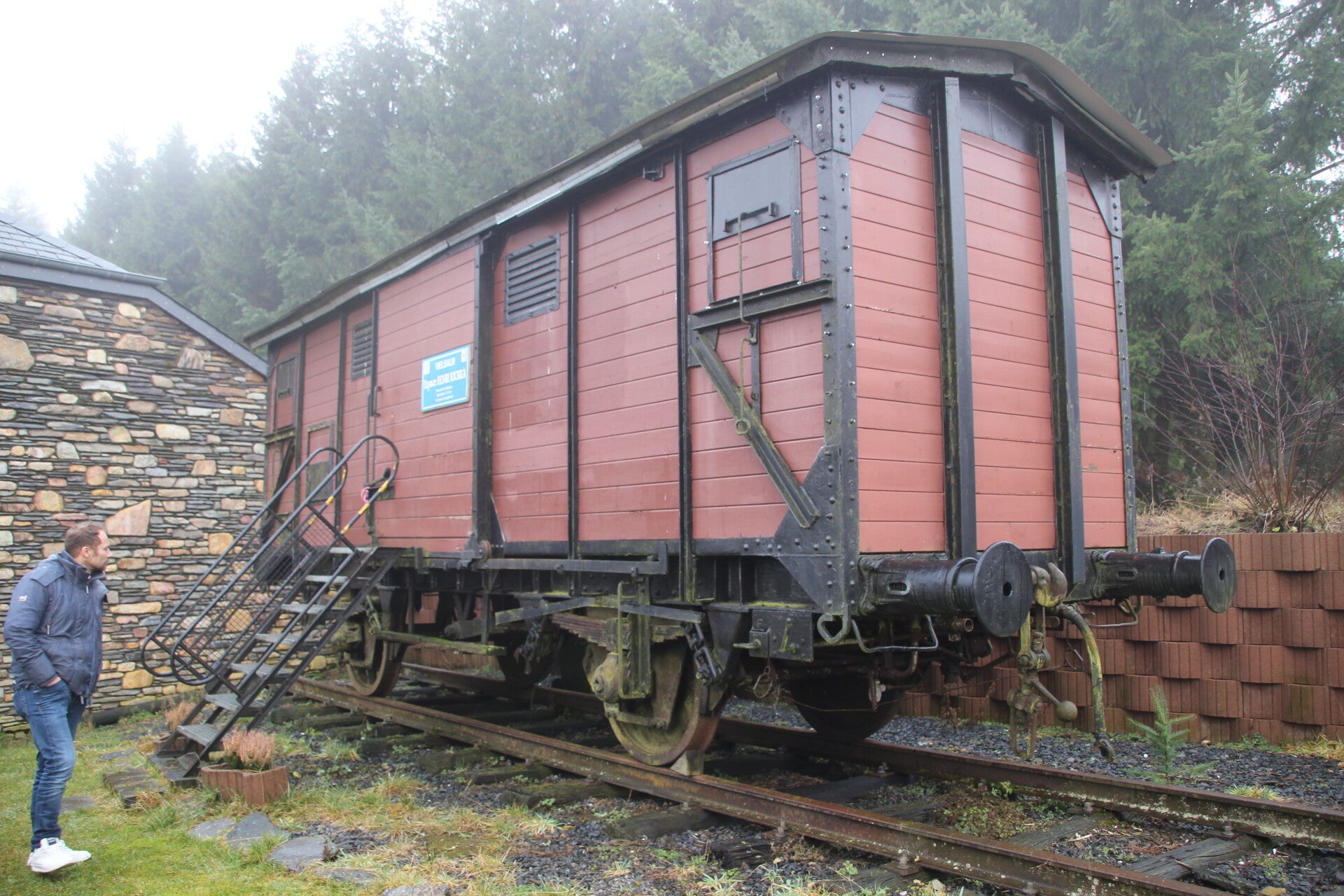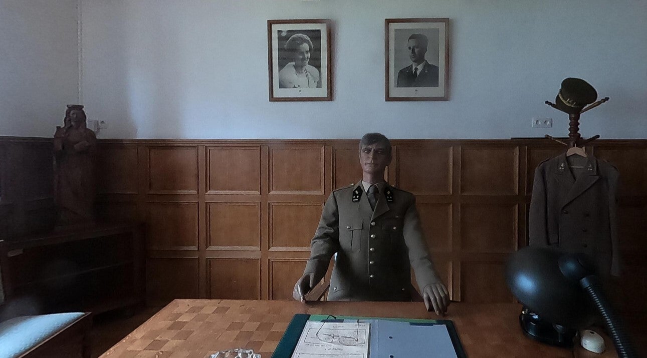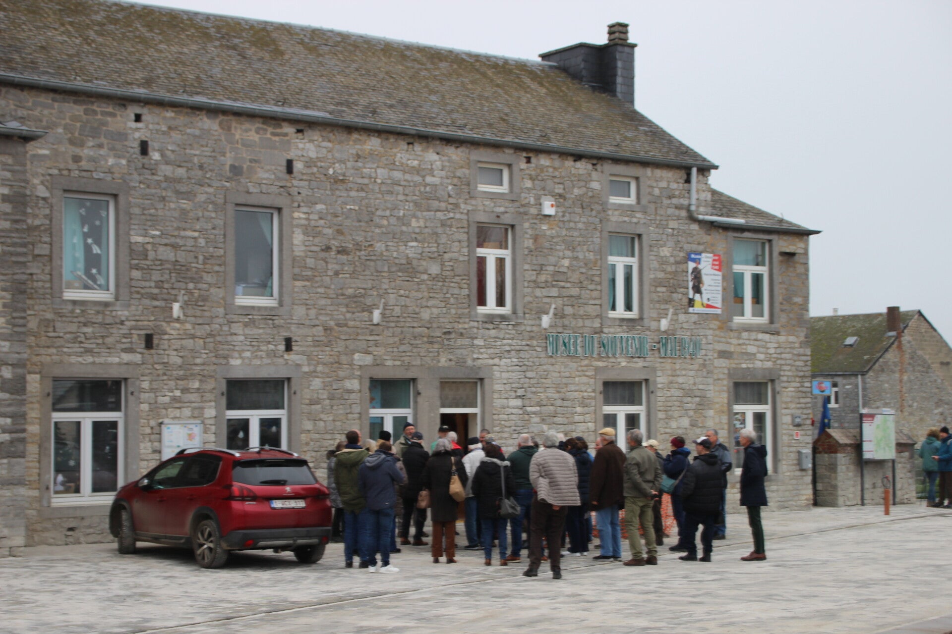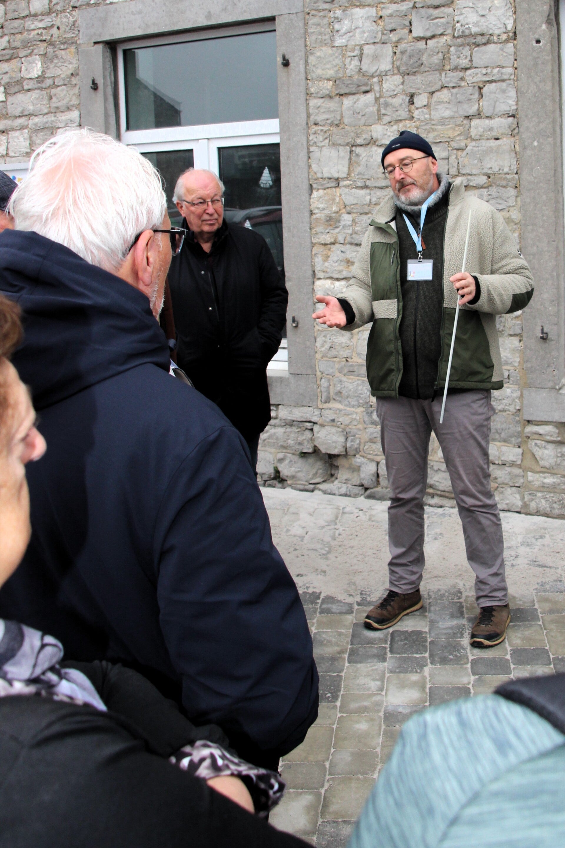 Het was nog donker toen we iets na half acht de parking aan de Hellestraat in Marke afreden. De bus reed richting Doornik om vanaf daar een heel eind de Route Wallonie te volgen. Bij de eerste halte, we waren al in Spy, werd het ontbijt verorberd, koffiekoeken met … koffie. Daarna reden linea directa (rechtstreeks) naar Haut-le-Wastia, een onooglijk klein dorpje, sedert 1965 deelgemeente van Anhée, in de provincie Namen. Daar worden wij opgewacht door Olivier Voets, majoor op rust. Hij gidst ons door het Musée du Souvenir, Mai 1940.