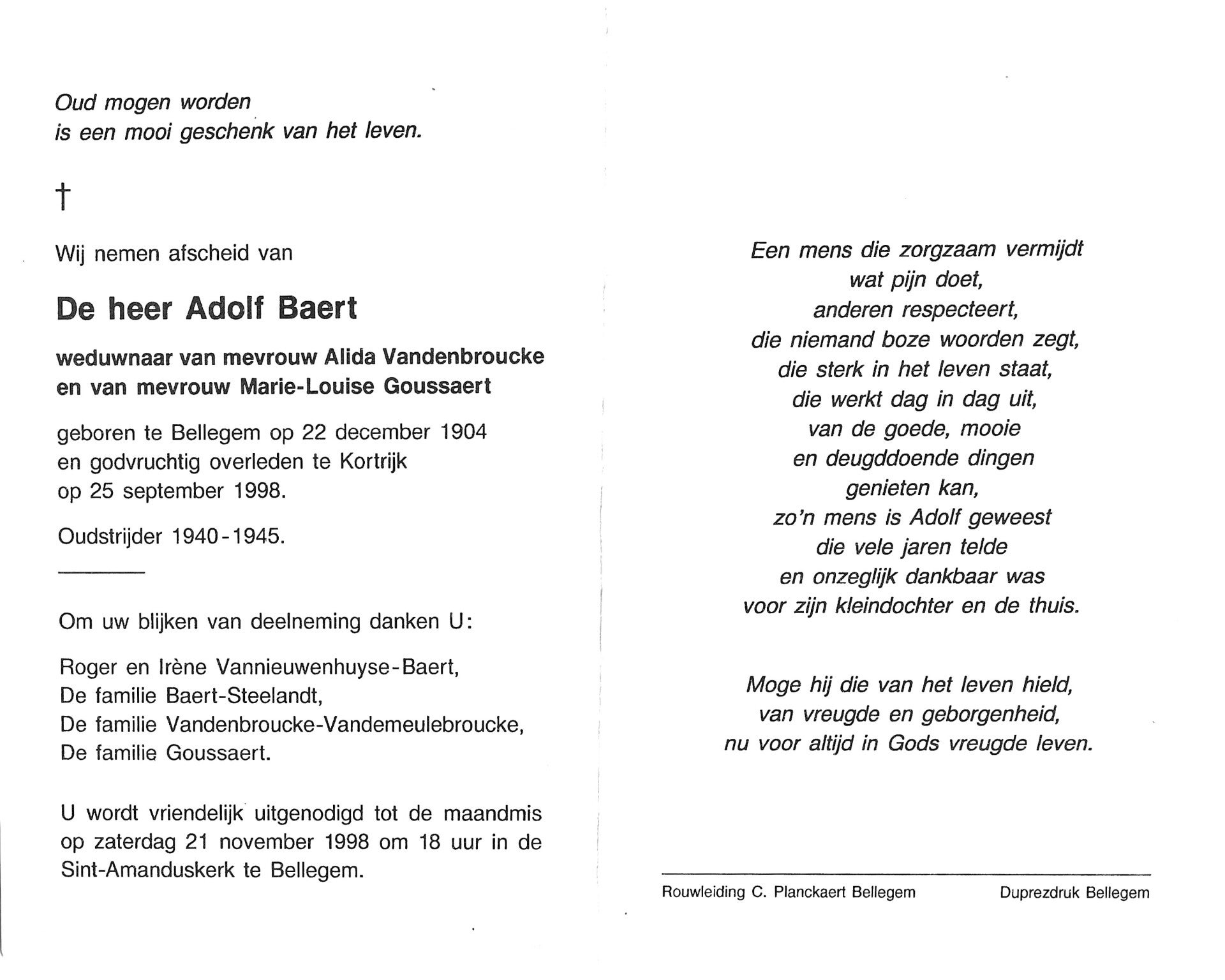 Gaston Baert werd op 31 oktober 1916 als dwangarbeider (Z.A.B.'er) weggevoerd en werd vrijgelaten op 29 juni 1918.