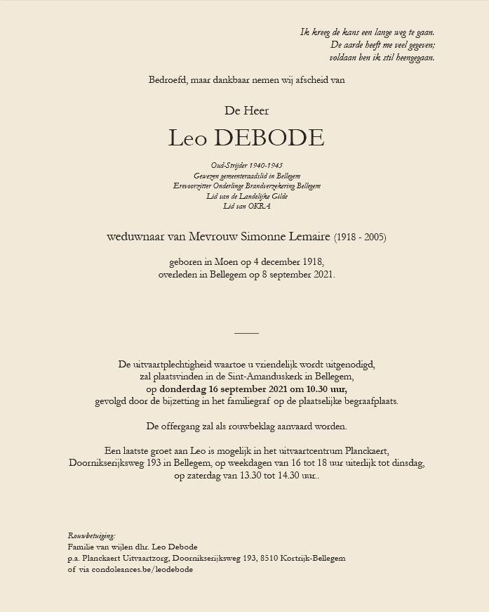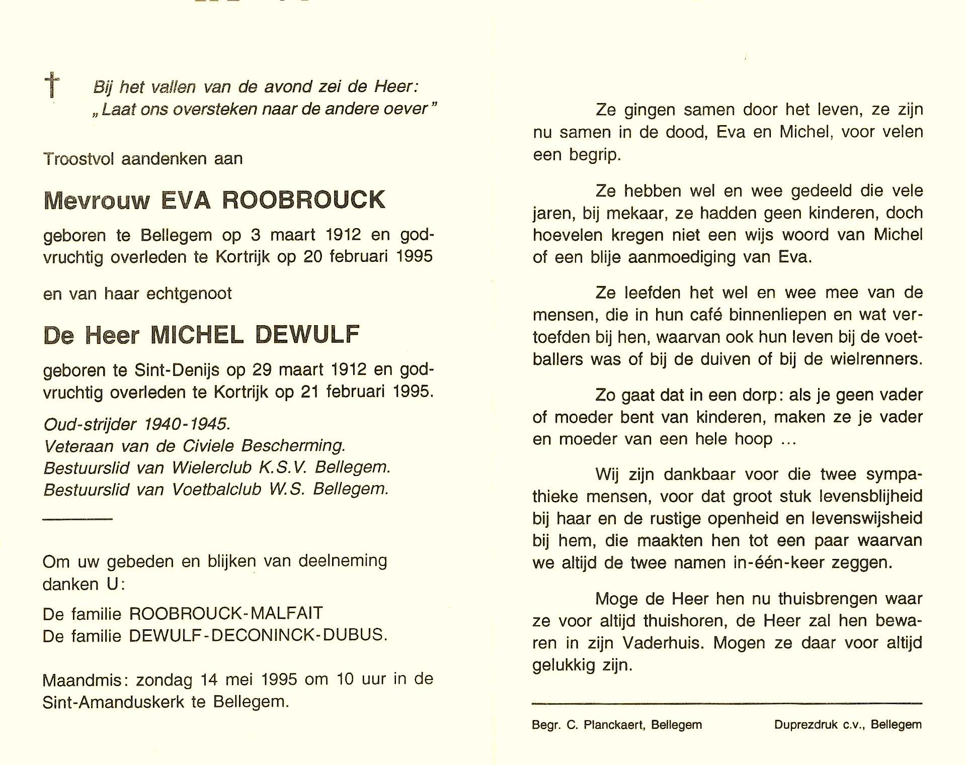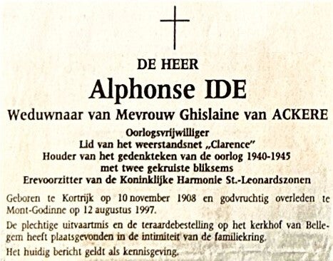 ° 13 juni 1912 Bissegem + 9 januari 2002 Kortrijk (+) 16 januari 2002 Bellegem