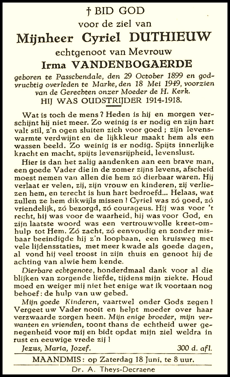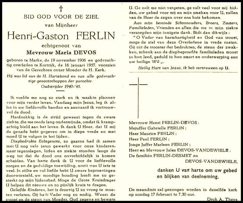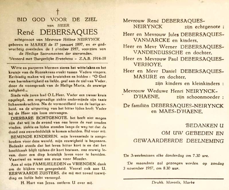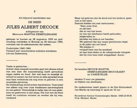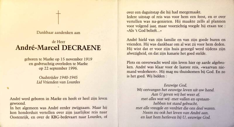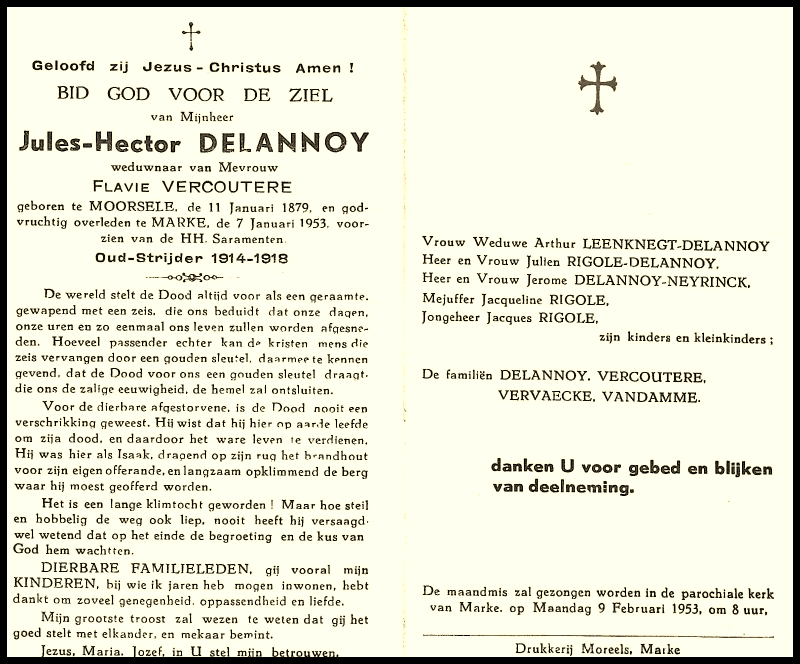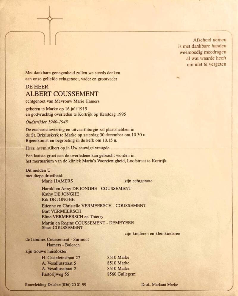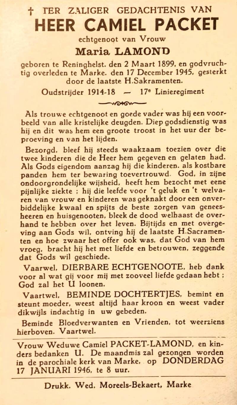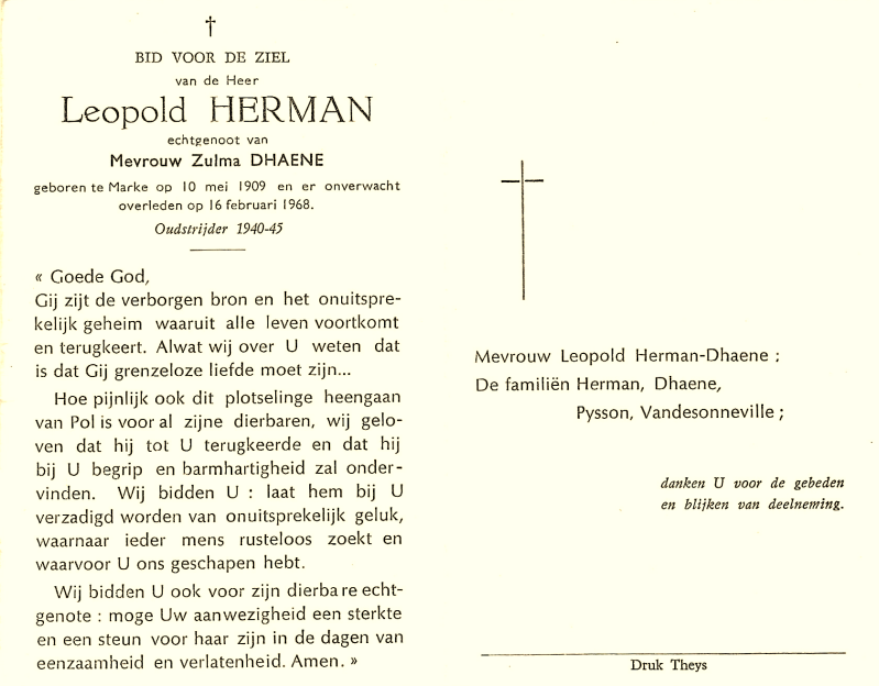 Bronnen: 1. Michel Faillie en Philippe Delameilleure, Marke tijdens de Tweede Wereldoorlog, 2019, pag. 428 en 2. Bidprentje