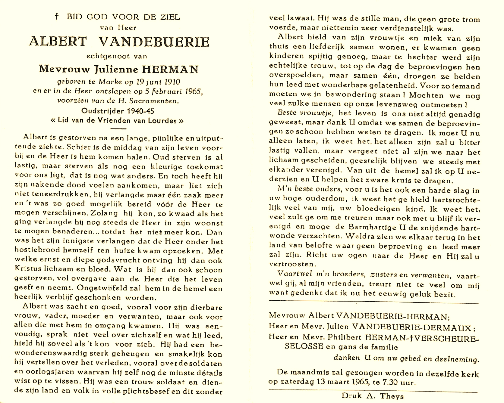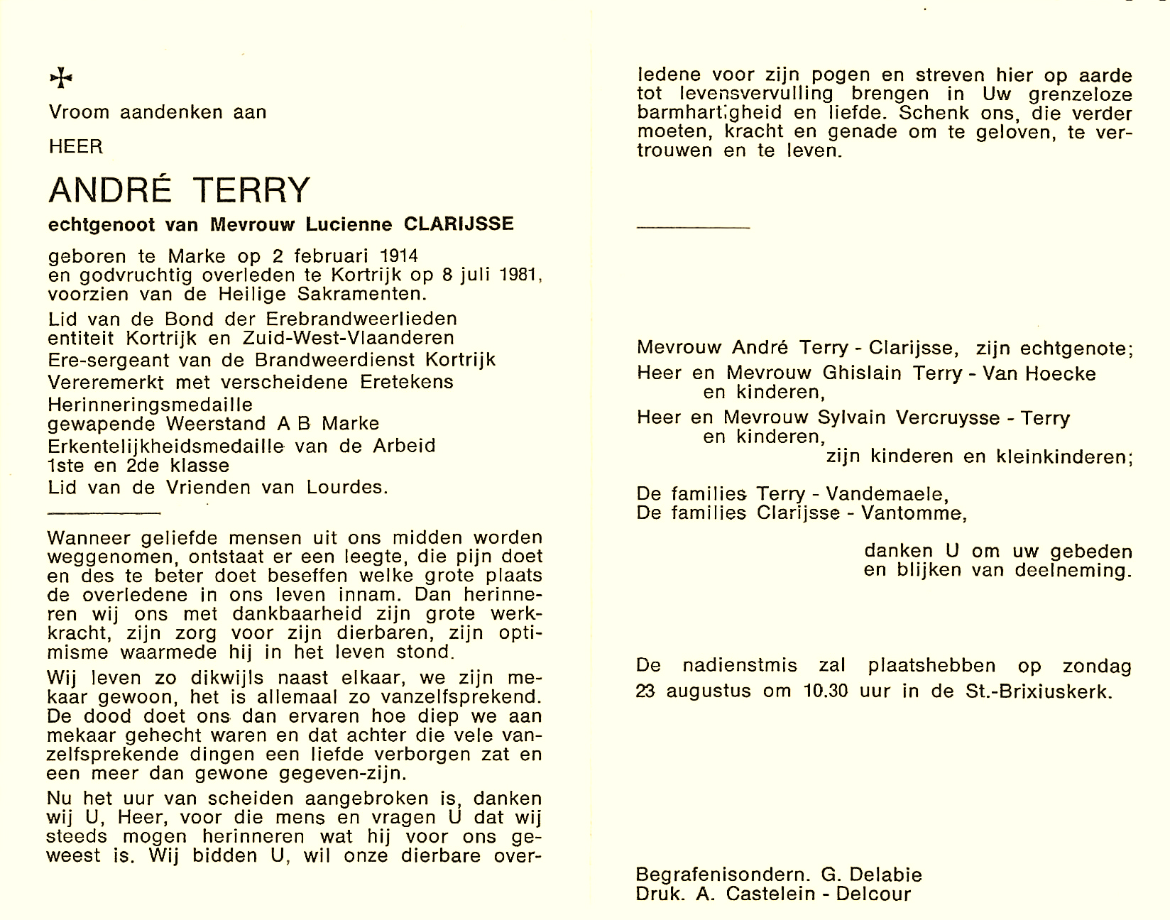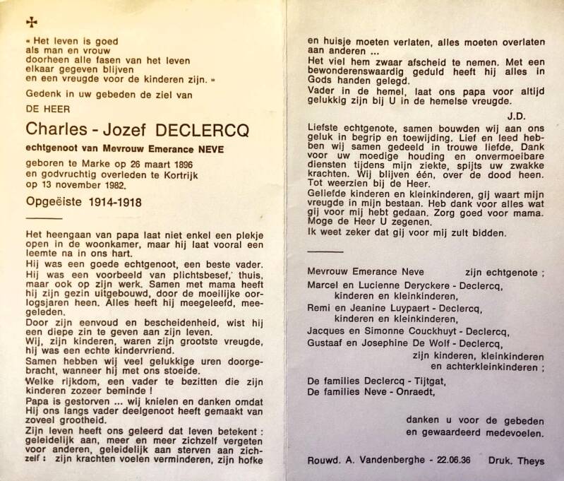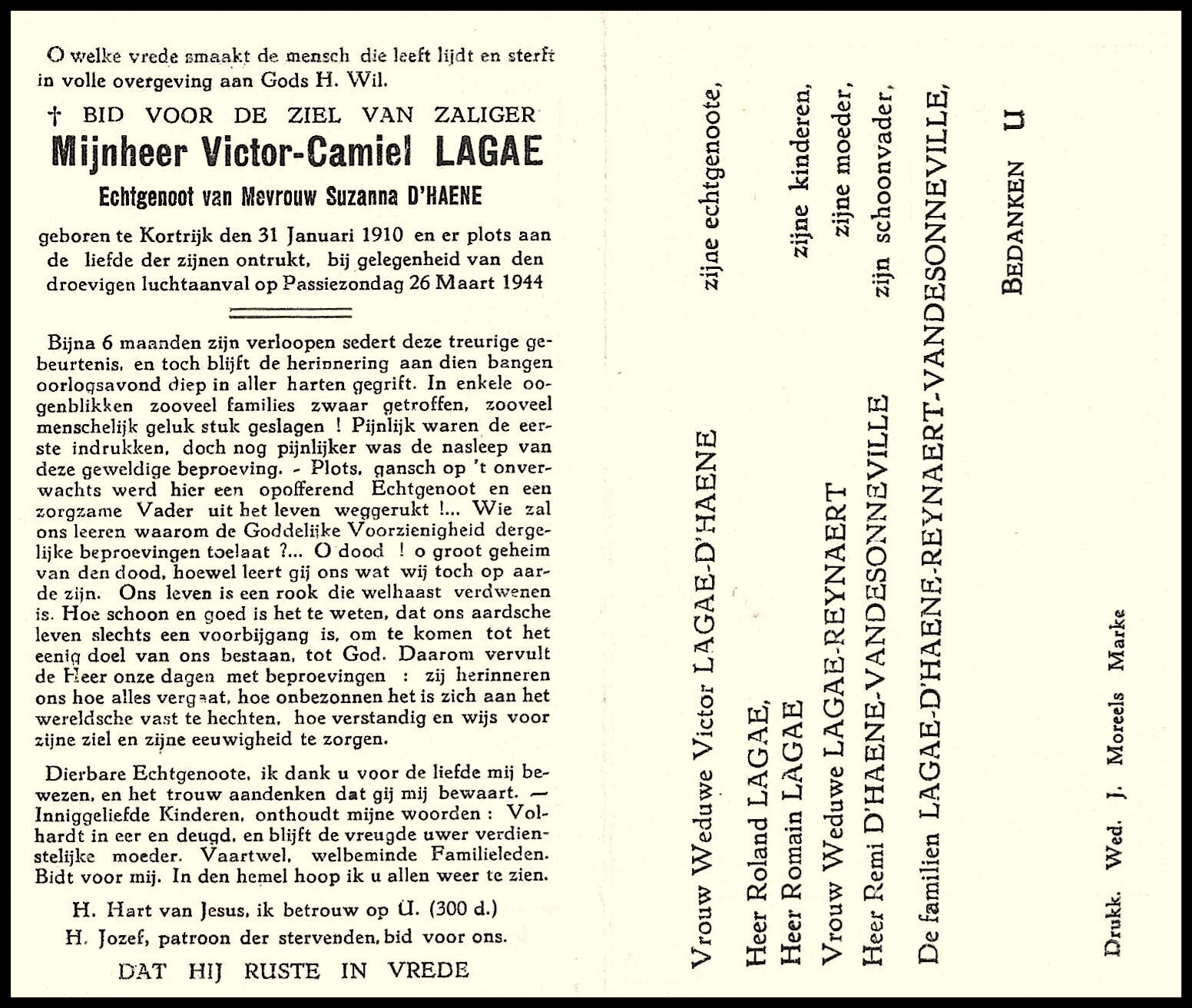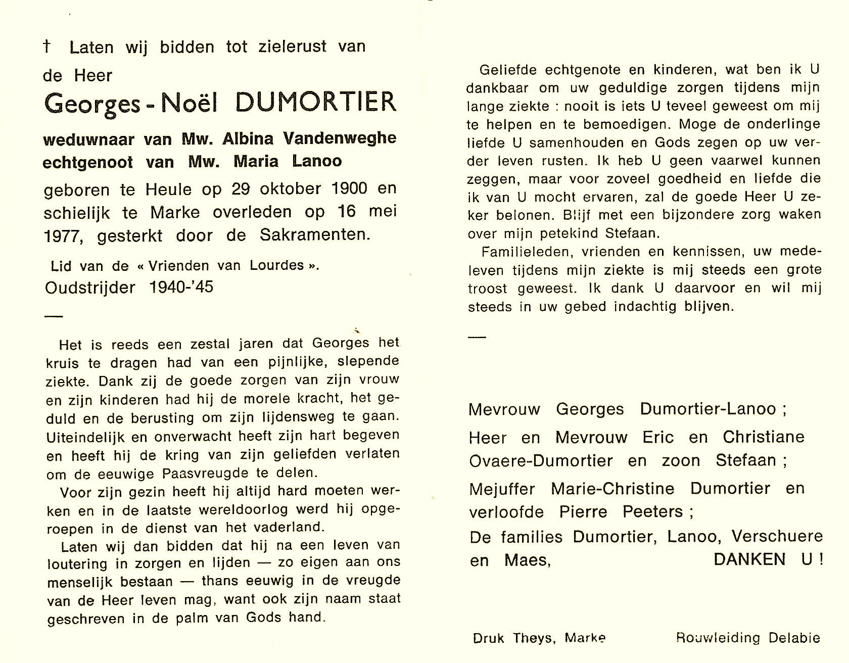 Bronnen: 1. Michel Faillie en Philippe Delameilleure, Marke tijdens de Tweede Wereldoorlog, 2019, pag. 428 en 2. Bidprentje