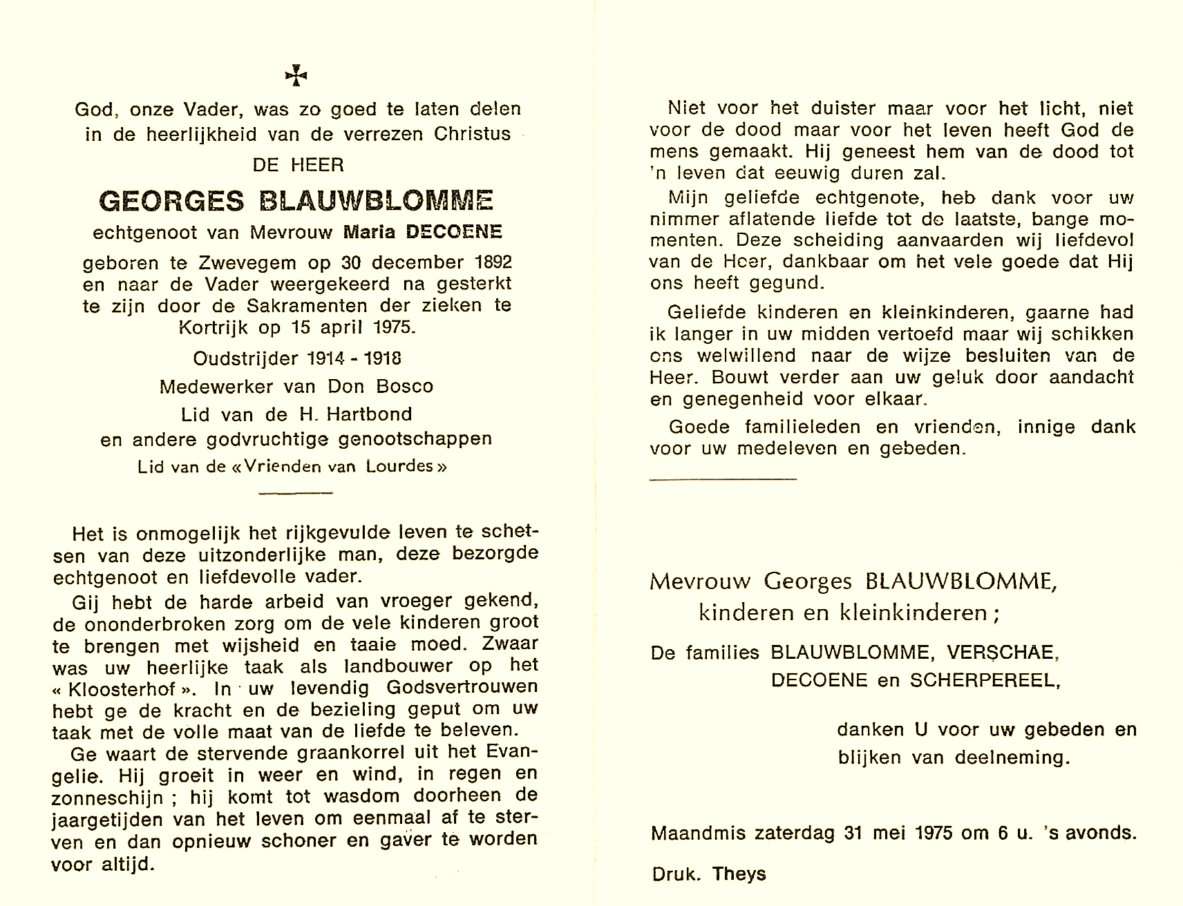 Bidprentje Georges Blauwblomme