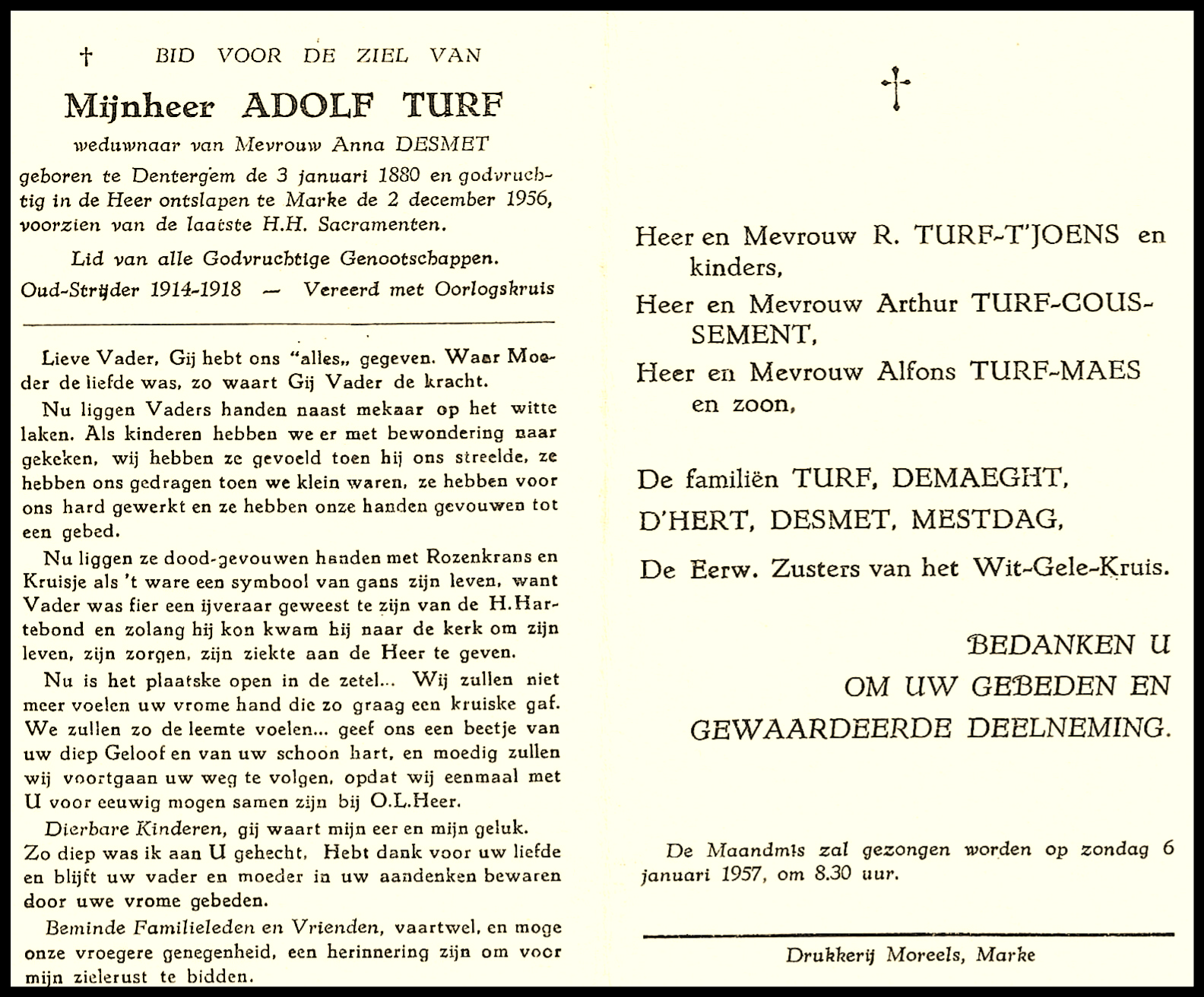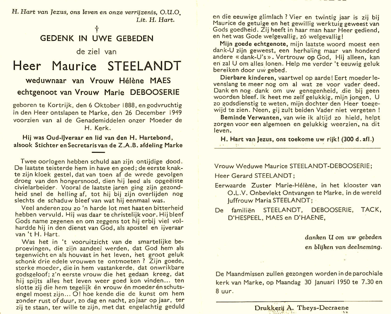 Bronnen: 1. Ledenlijst N.S.B. Marke 2. Bidprentje