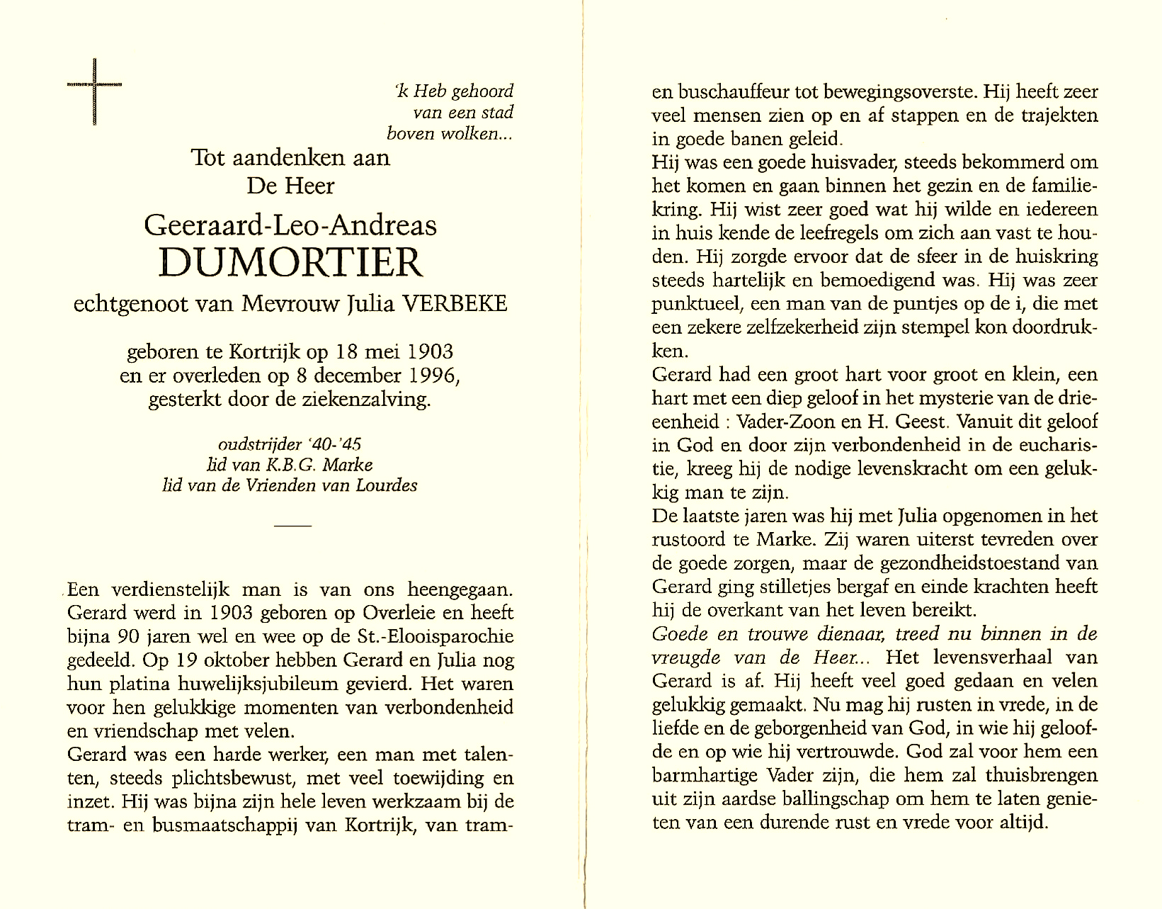 ° 18 januari 1912 Kortrijk + 18 maart 1999 Kortrijk □ Marke