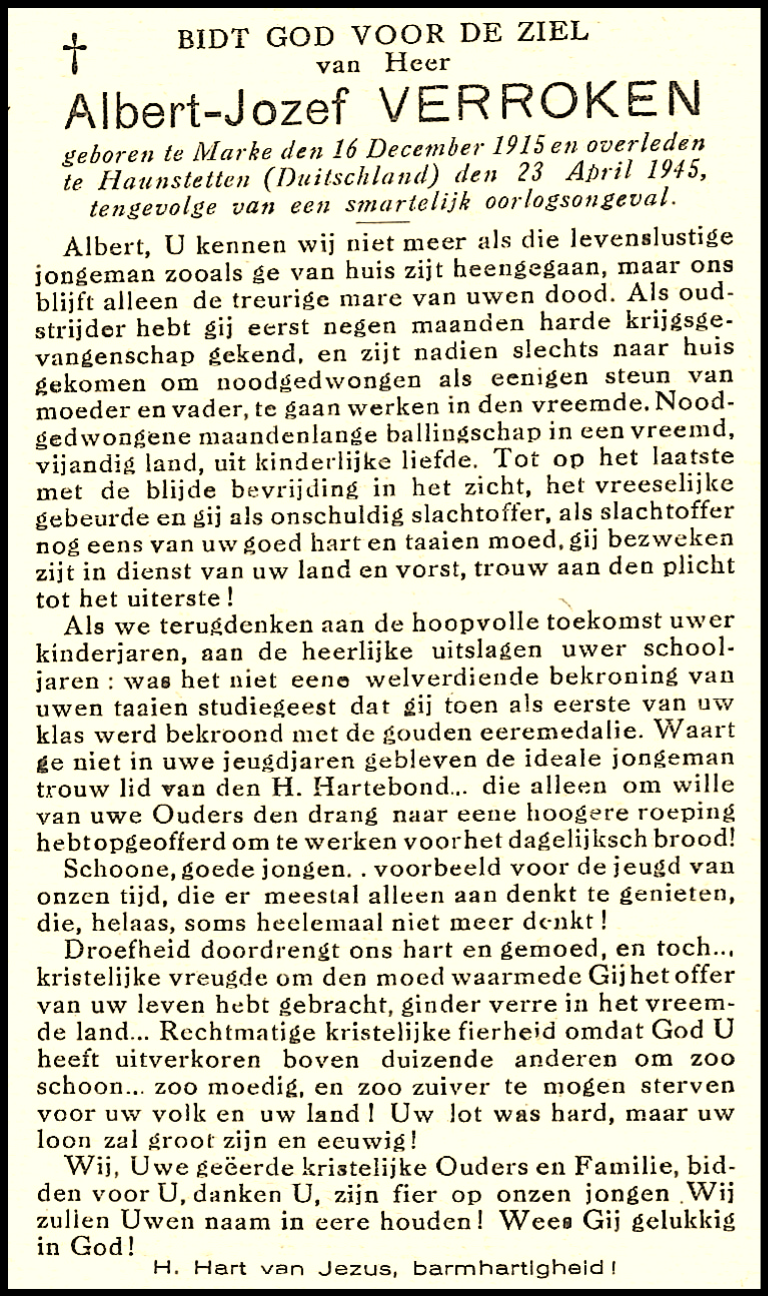 Bidprentje Albert Verroken