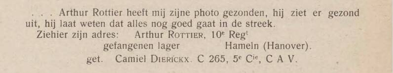 Cyriel Vinckier werd op 2 december 1916 door de Duitser bezetter opgeëist en weggevoerd. Lag 15 weken in het ziekenhuis door ondervoeding en gebrek aan verzorging. Liep een beenkwaal op en werd op 27 april 1918 naar huis gestuurd.