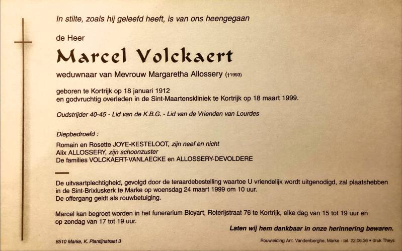 Rouwbrief Marcel Volckaert