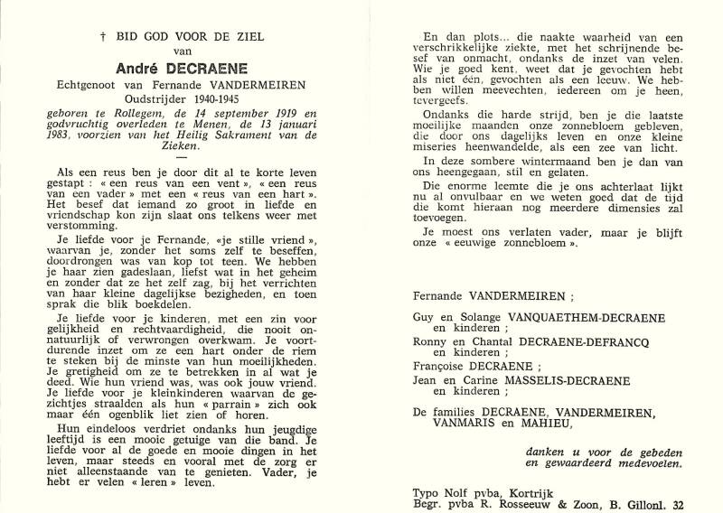 ° 12 september 1920 Oostrozebeke + 12 juli 1983 Kortrijk â–¡ Rollegem