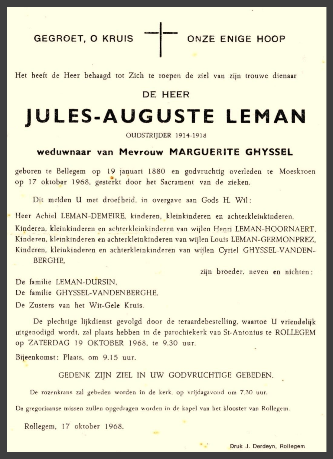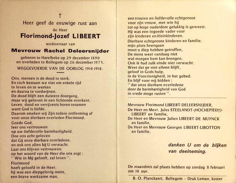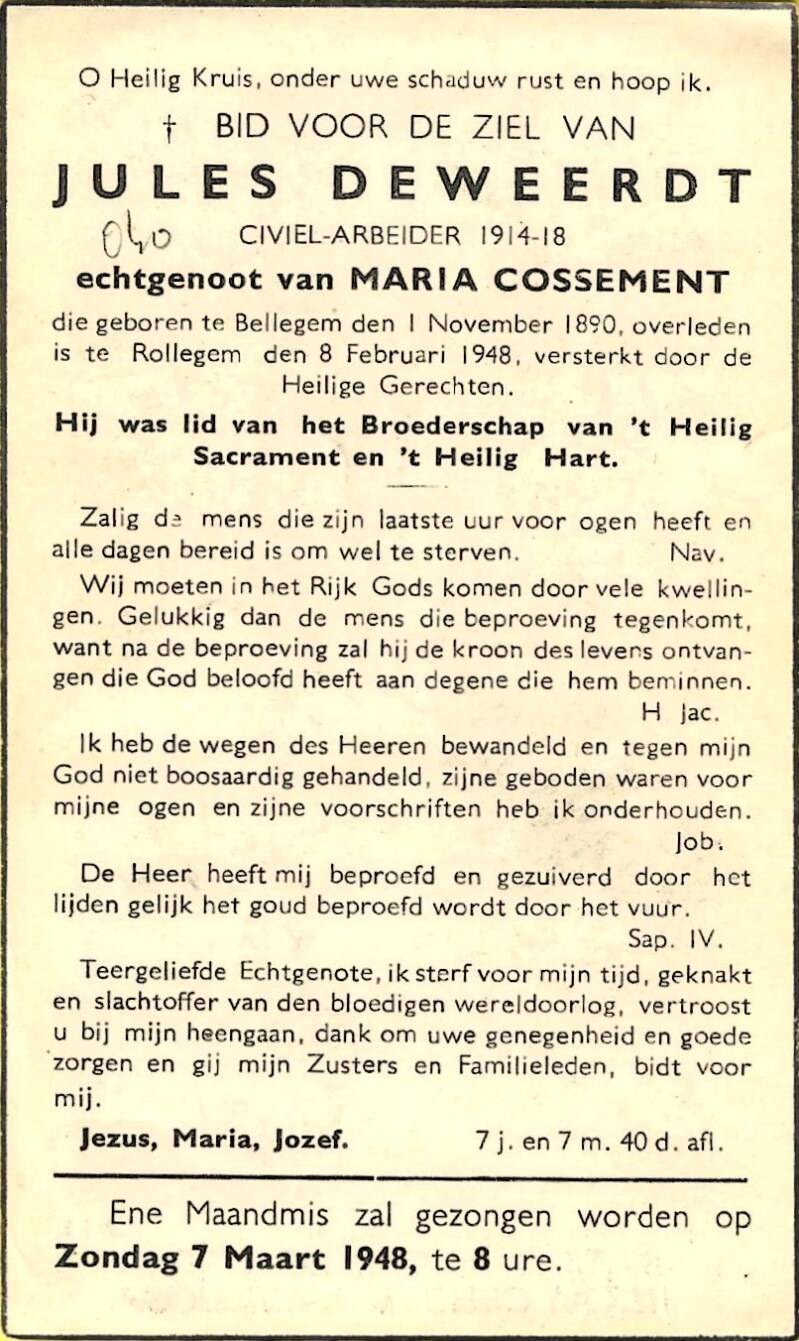 Bronnen: 1. Koninklijk Museum van het Leger en de Krijgsgeschiedenis - Dossier 6178857 en 2. bidprentje