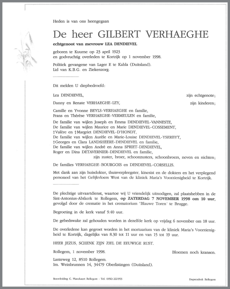 ° 20 juni 1913 Rollegem + 13 november 1998 Kortrijk